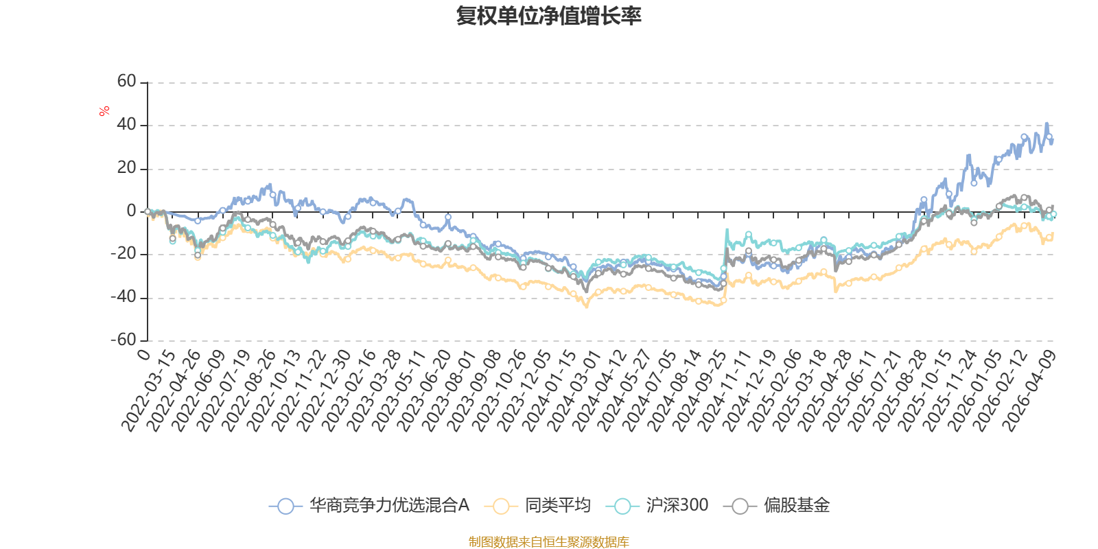 截至4月8日,华商竞争力优选混合A近三个月复权单位净值增长率为7.53%,位于同类可比基金85/689;近半年复权单位净值增长率为17.56%,位于同类可比基金72/689;近一年复权单位净值增长率为82.79%,位于同类可比基金64/685;近三年复权单位净值增长率为26.67%,位于同类可比基金127/417。