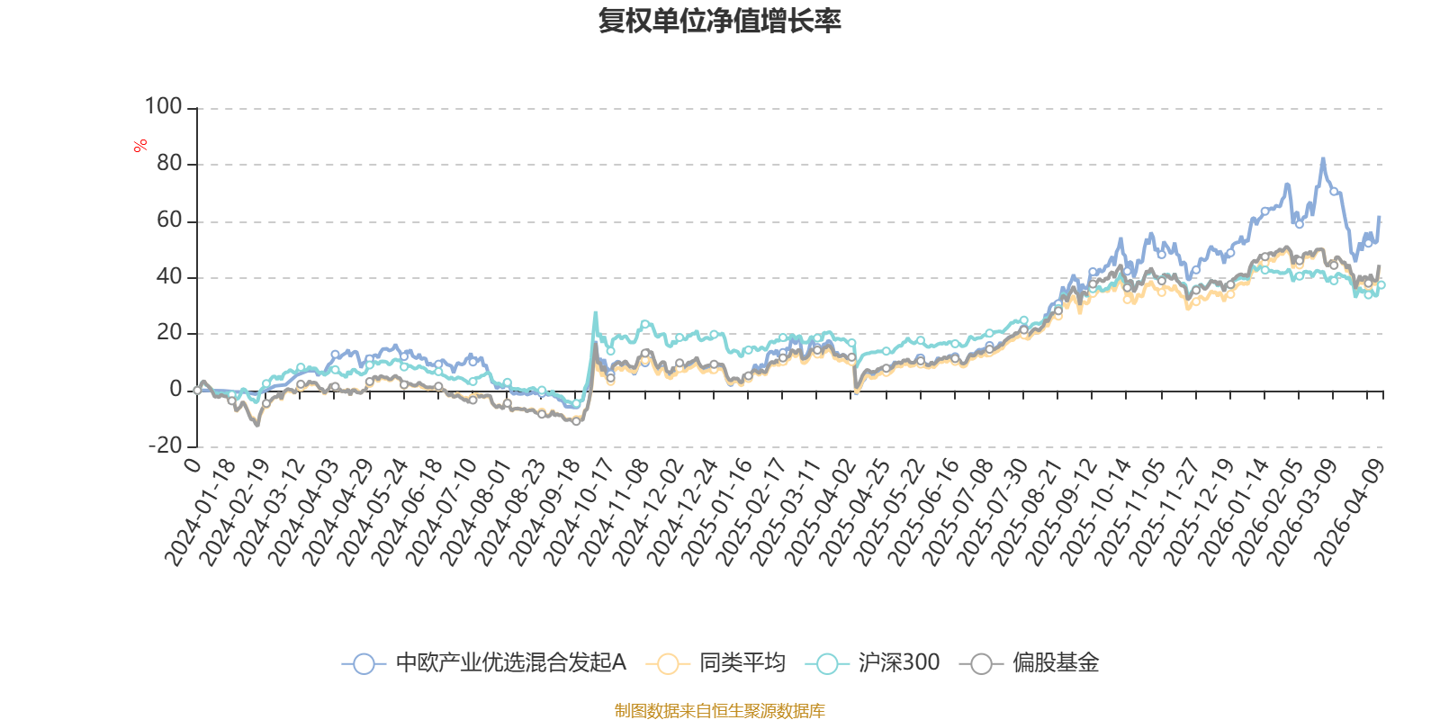 截至4月8日,中欧产业优选混合发起A近三个月复权单位净值增长率为2.06%,位于同类可比基金243/689;近半年复权单位净值增长率为7.51%,位于同类可比基金223/689;近一年复权单位净值增长率为61.51%,位于同类可比基金144/685。