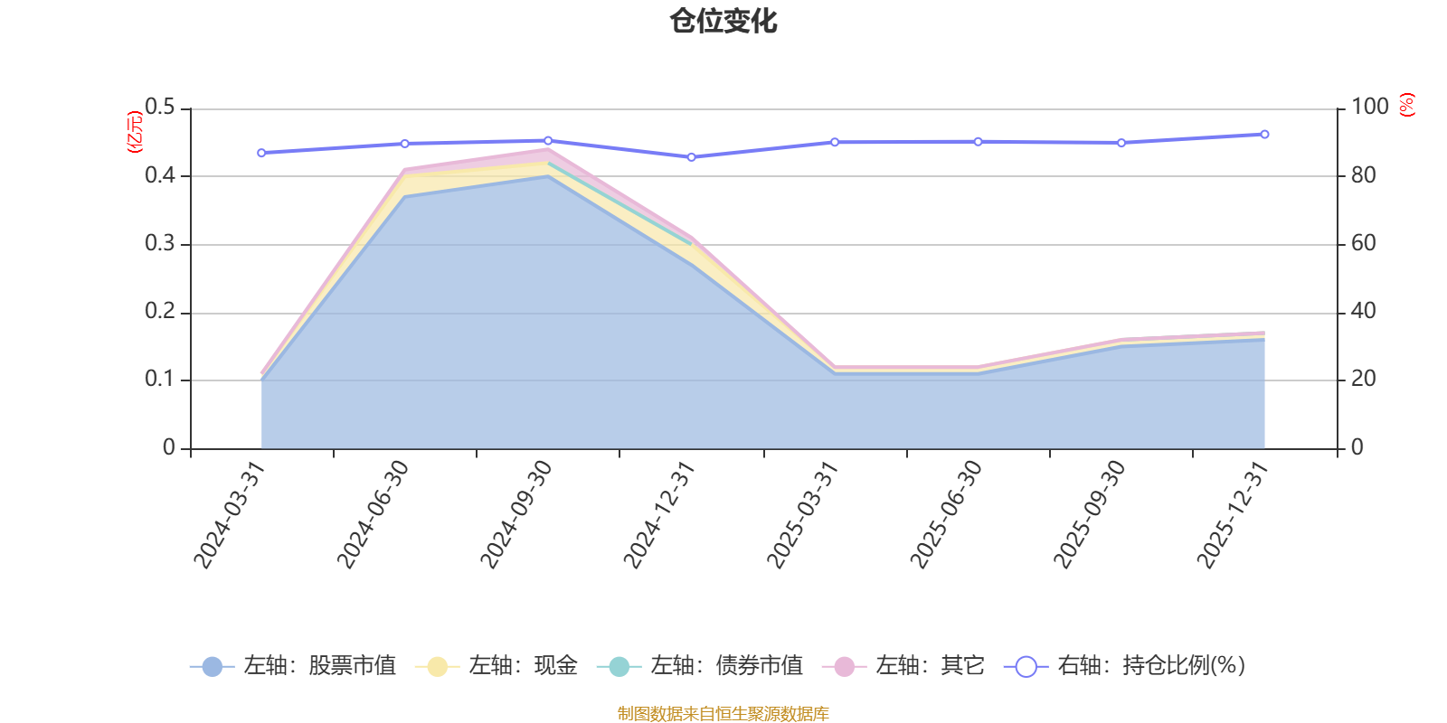 据定期报告数据统计,成立以来平均股票仓位为89.43%,同类平均为84.04%。2025年末基金达到92.41%的最高仓位,2024年末最低,为85.68%。