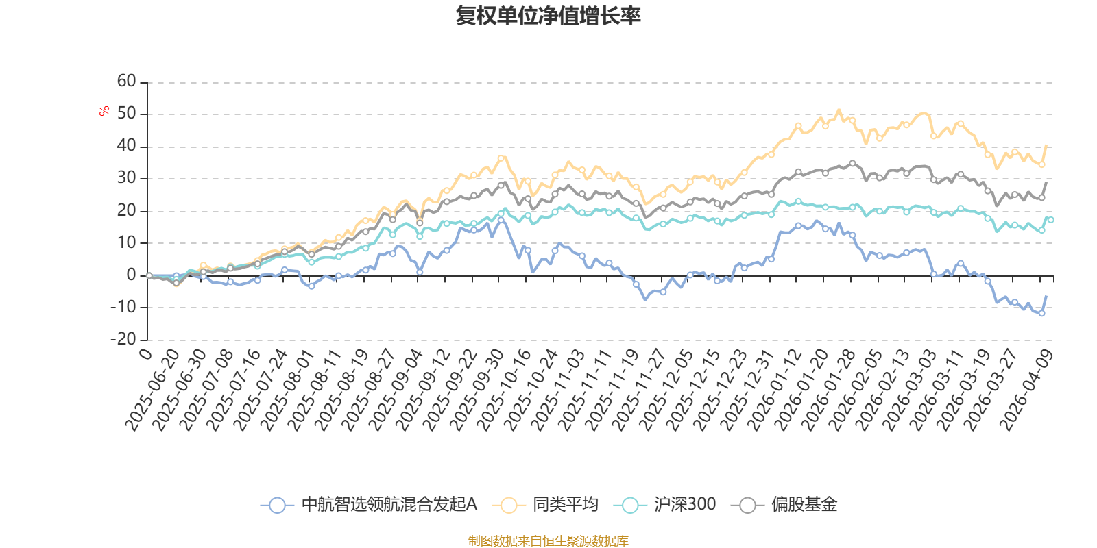 截至4月8日,中航智选领航混合发起A近三个月复权单位净值增长率为-17.24%,位于同类可比基金99/100;近半年复权单位净值增长率为-20.01%,位于同类可比基金100/100。
