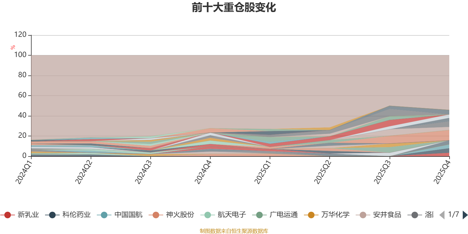 截至2025年末,基金十大重仓股分别是温氏股份、卫星化学、科伦药业、神农集团、青岛啤酒、中国国航、海天味业、伊利股份、新乳业、南玻A。