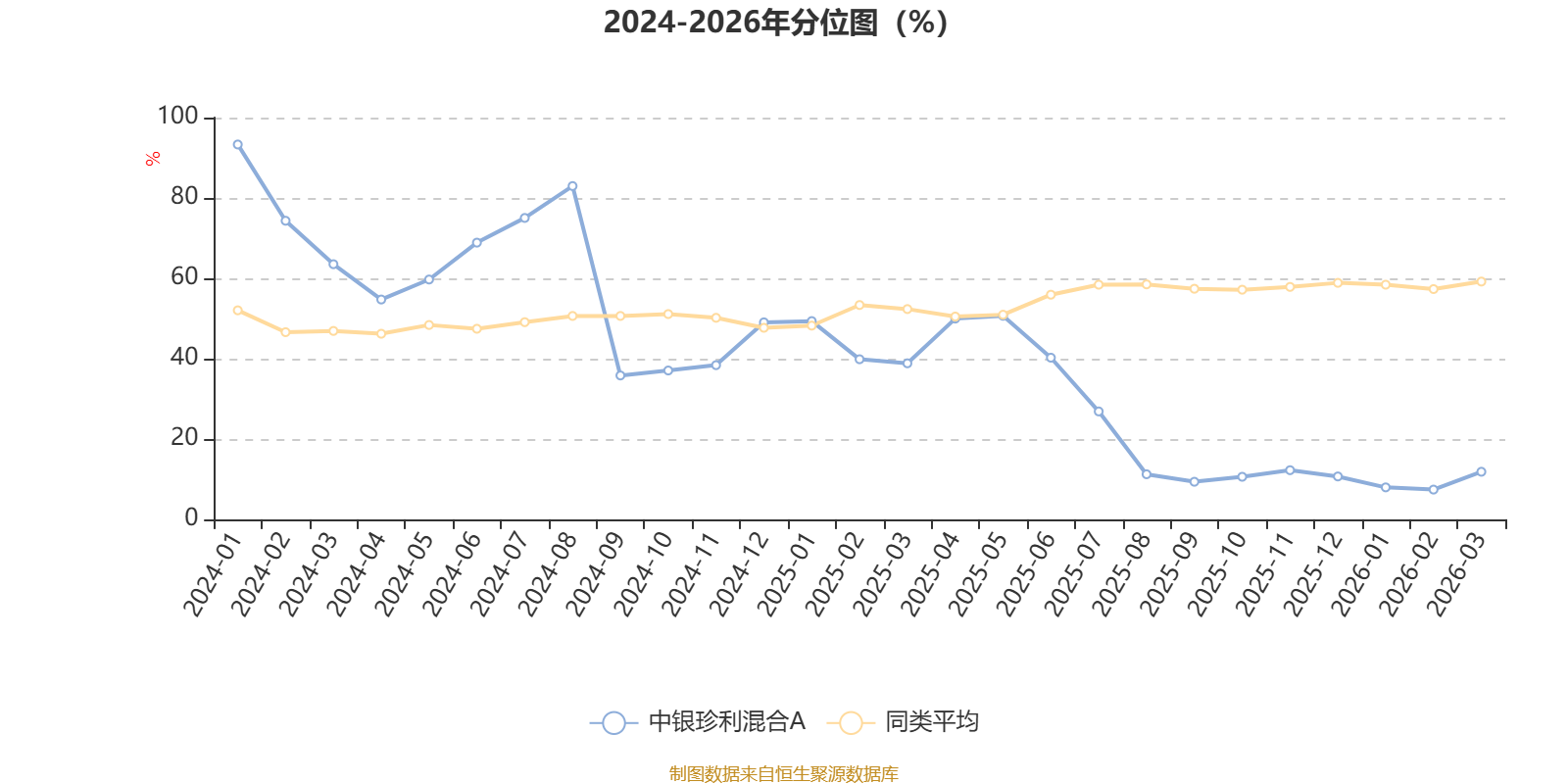 通过所选区间该基金净值增长率分位图,可以观察该基金与同类基金业绩比较情况。图为坐标原点到区间内某时点的净值增长率在同类基金中的分位数。