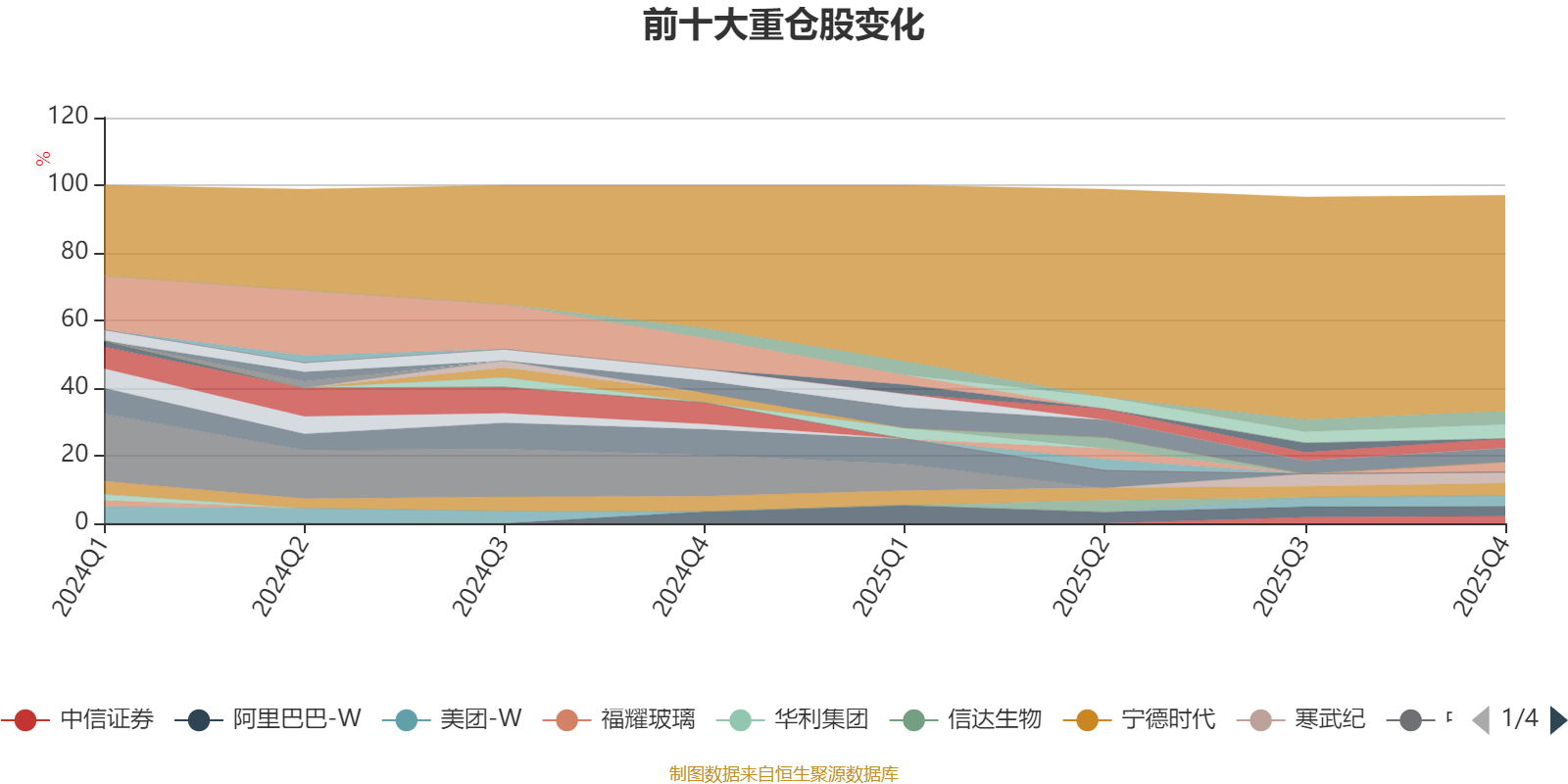 截至2025年末,基金十大重仓股分别是紫金矿业、腾讯控股、中芯国际、宁德时代、寒武纪、美团-W、中国平安、阿里巴巴-W、山东黄金、中信证券。