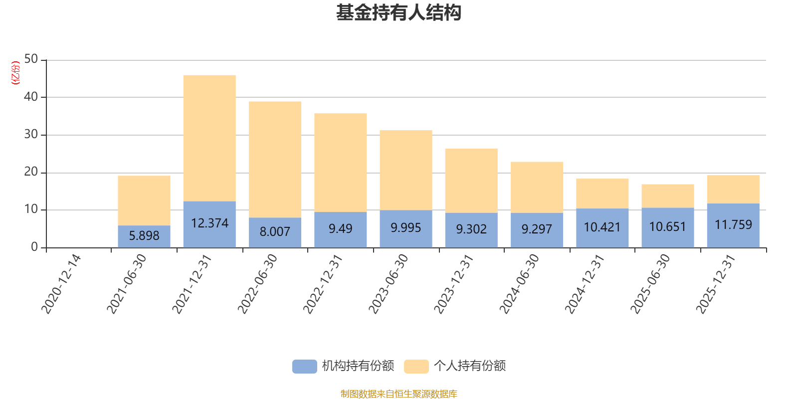 截至2025年12月31日,基金持有人共计8542户,合计持有19.3亿份。其中管理人员工持有1106.9万份,占比0.57%,机构持有份额占比60.91%,个人投资者占比39.09%。