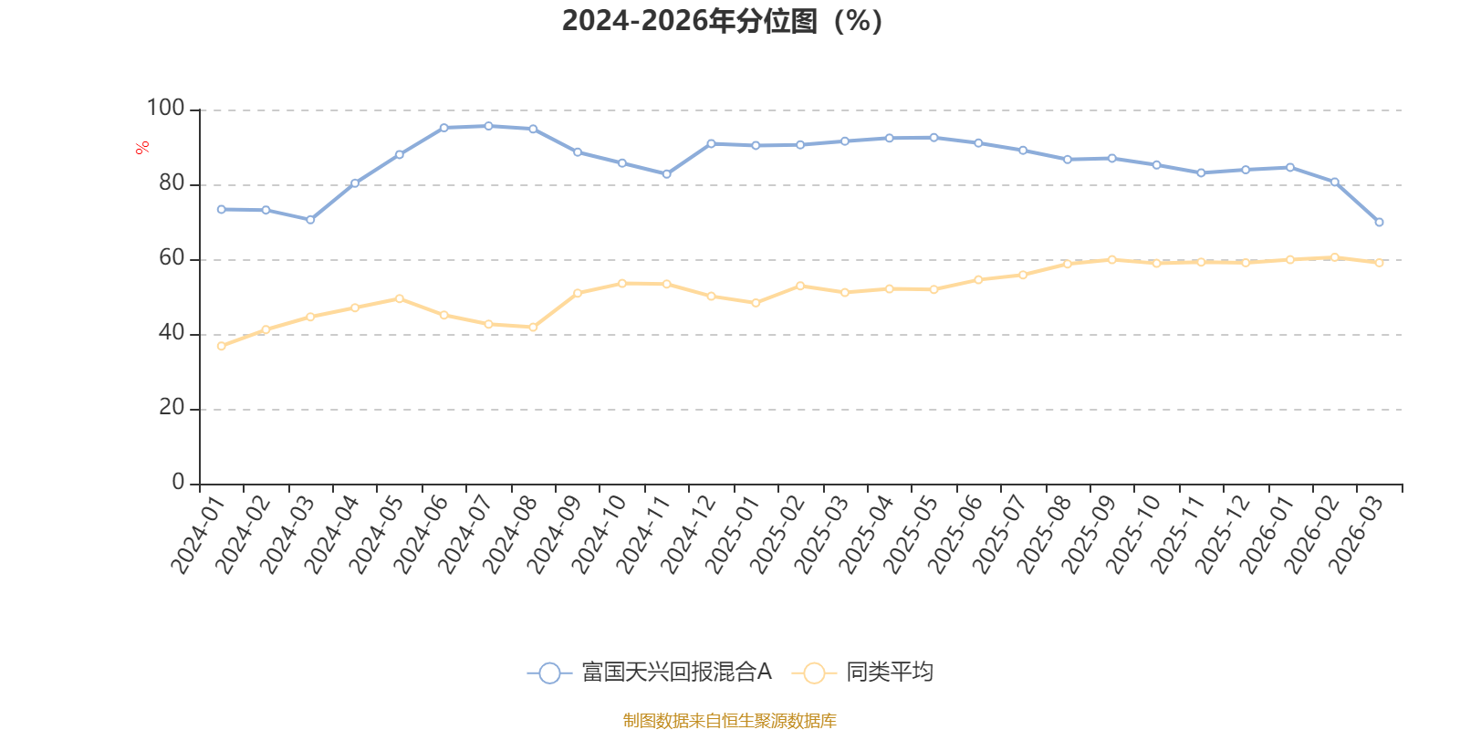 通过所选区间该基金净值增长率分位图,可以观察该基金与同类基金业绩比较情况。图为坐标原点到区间内某时点的净值增长率在同类基金中的分位数。