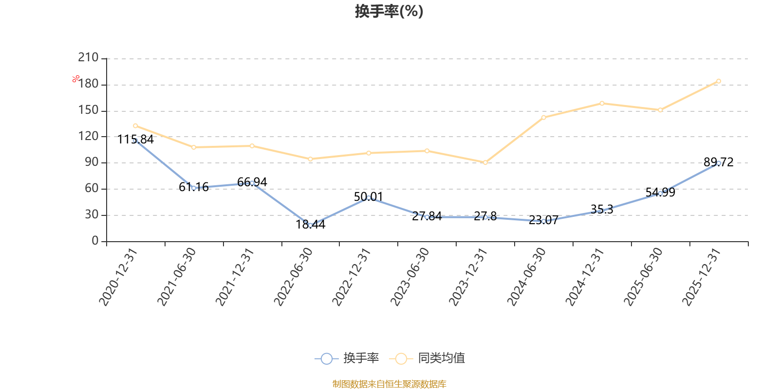 截至2025年12月31日,基金最近一年换手率约143.22%,持续低于同类均值。