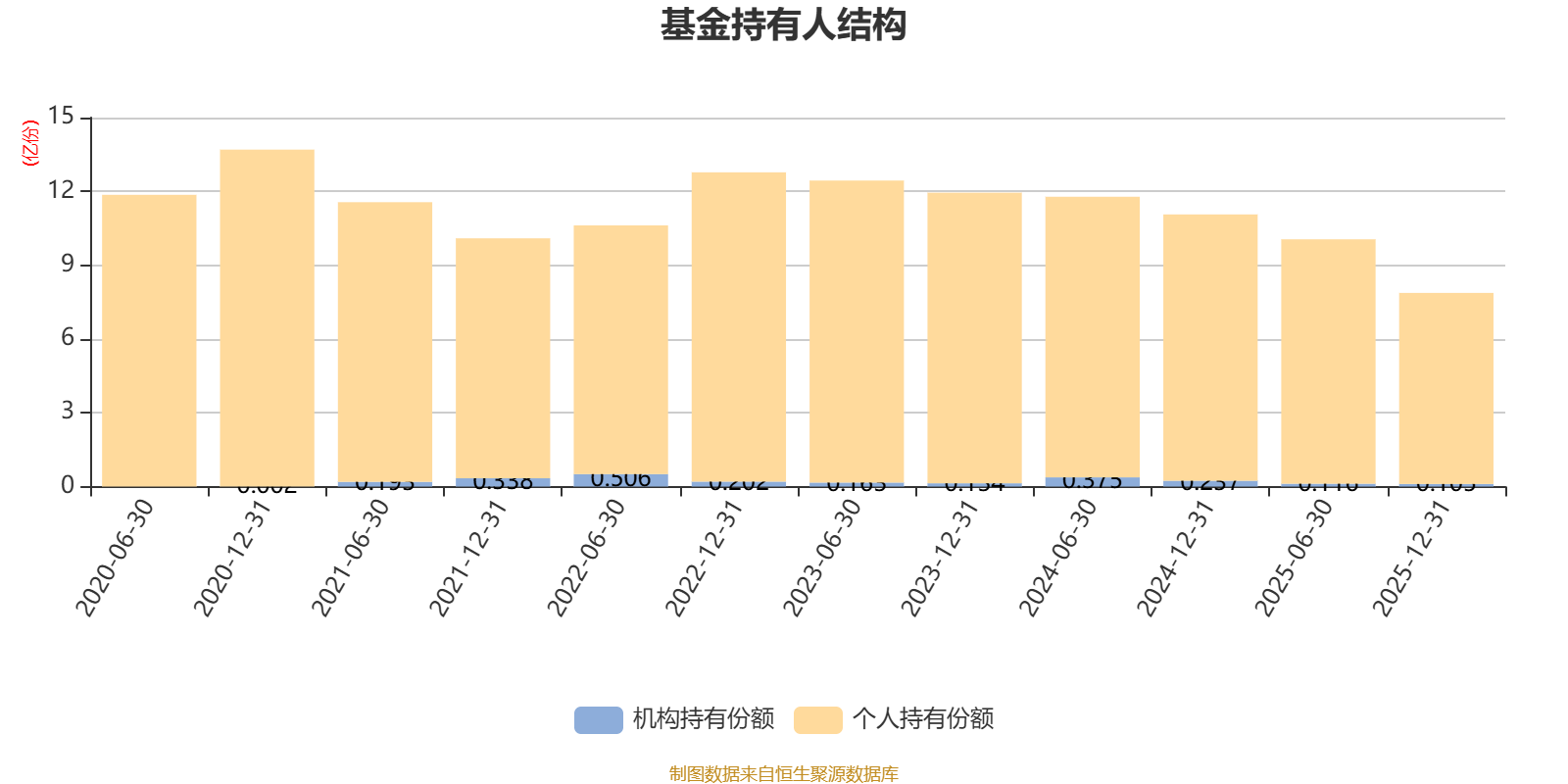 截至2025年12月31日,基金持有人共计4.11万户,合计持有7.87亿份。其中管理人员工持有71.74万份,占比0.09%,机构持有份额占比1.33%,个人投资者占比98.67%。
