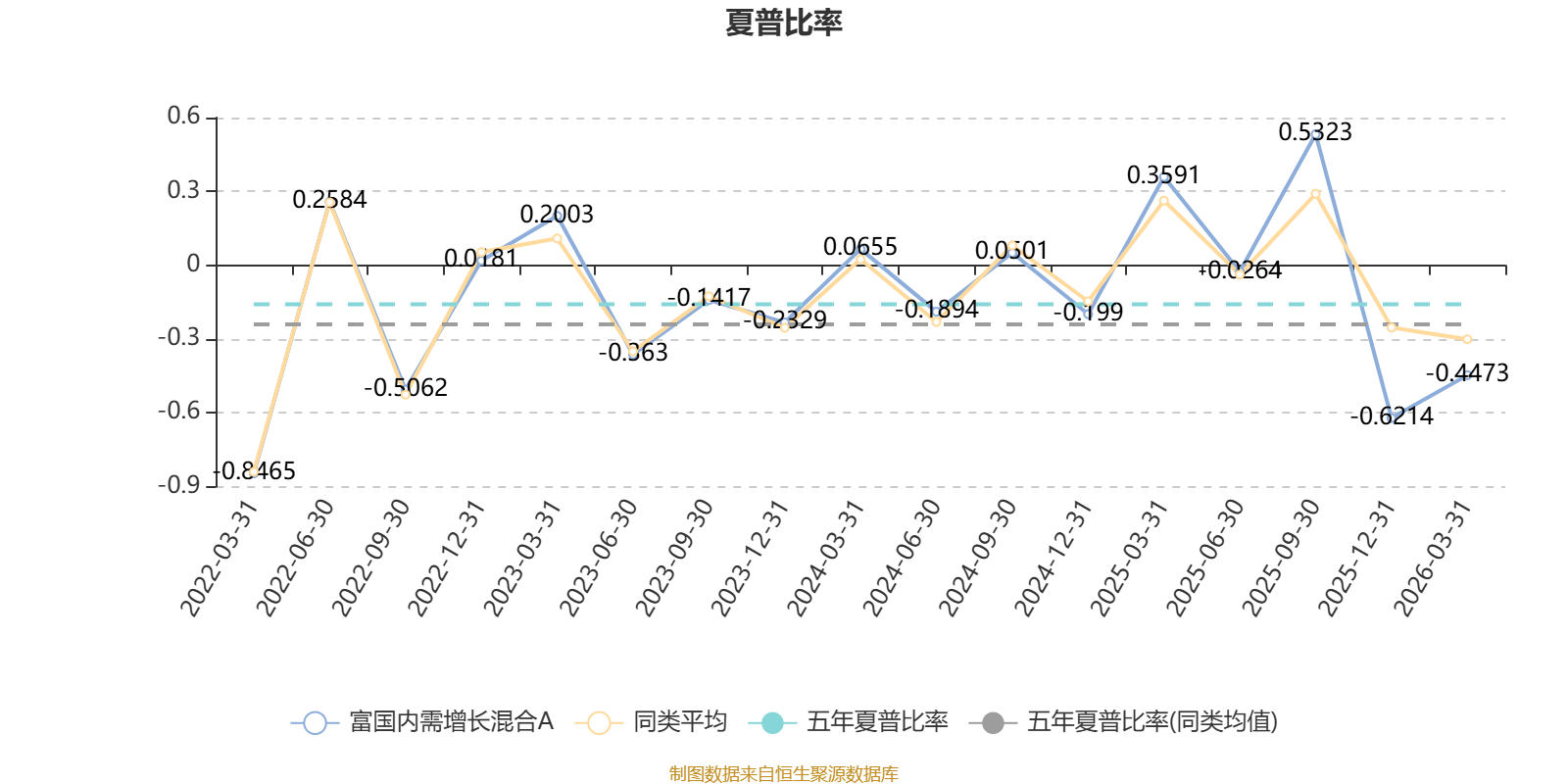 截至3月31日,基金近三年夏普比率为-0.0605,位于同类可比基金32/75。