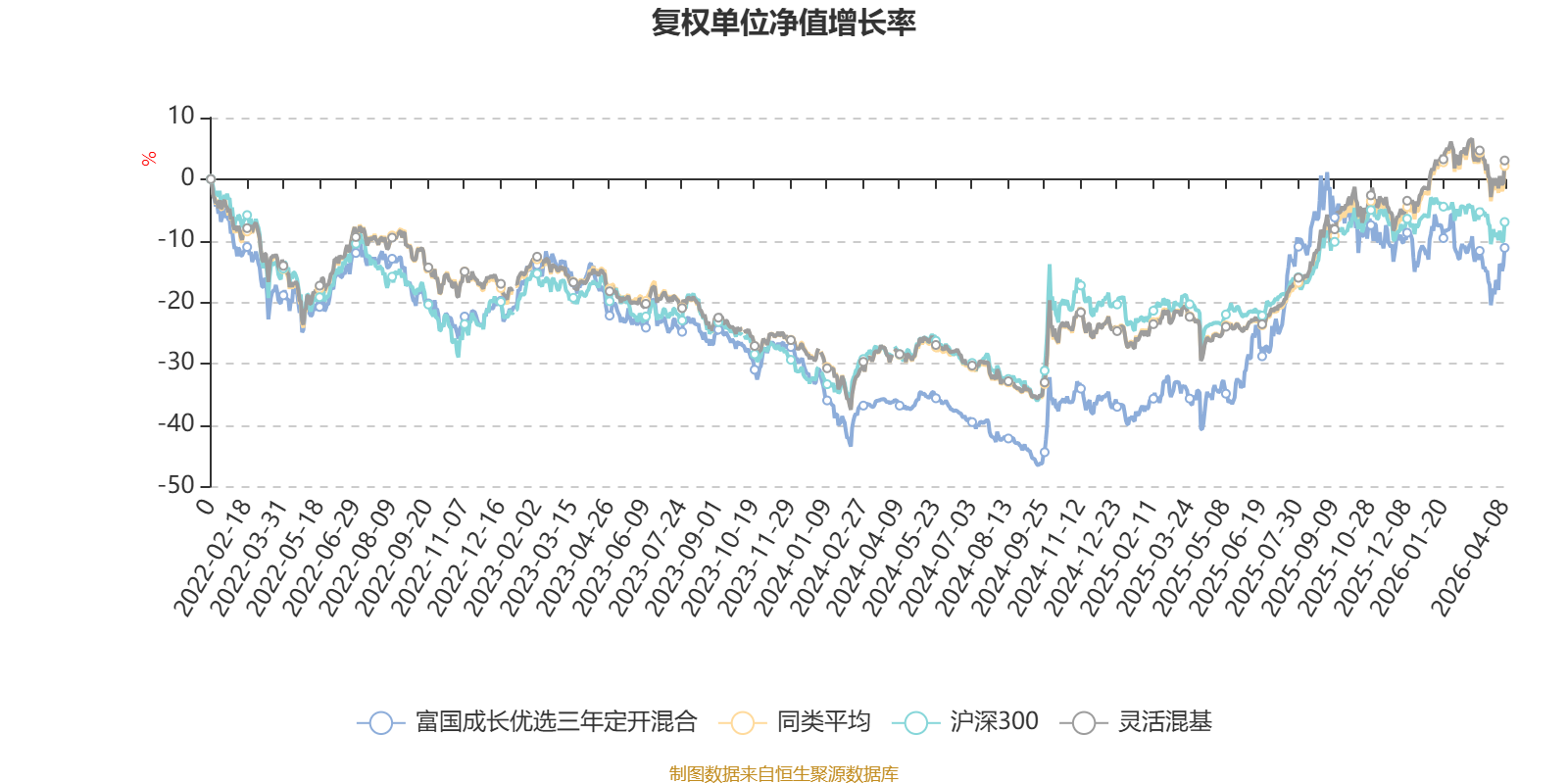 截至4月8日,富国成长优选三年定开混合近三个月复权单位净值增长率为-3.01%,位于同类可比基金957/1287;近半年复权单位净值增长率为-6.63%,位于同类可比基金1114/1286;近一年复权单位净值增长率为49.72%,位于同类可比基金403/1286;近三年复权单位净值增长率为3.41%,位于同类可比基金899/1286。