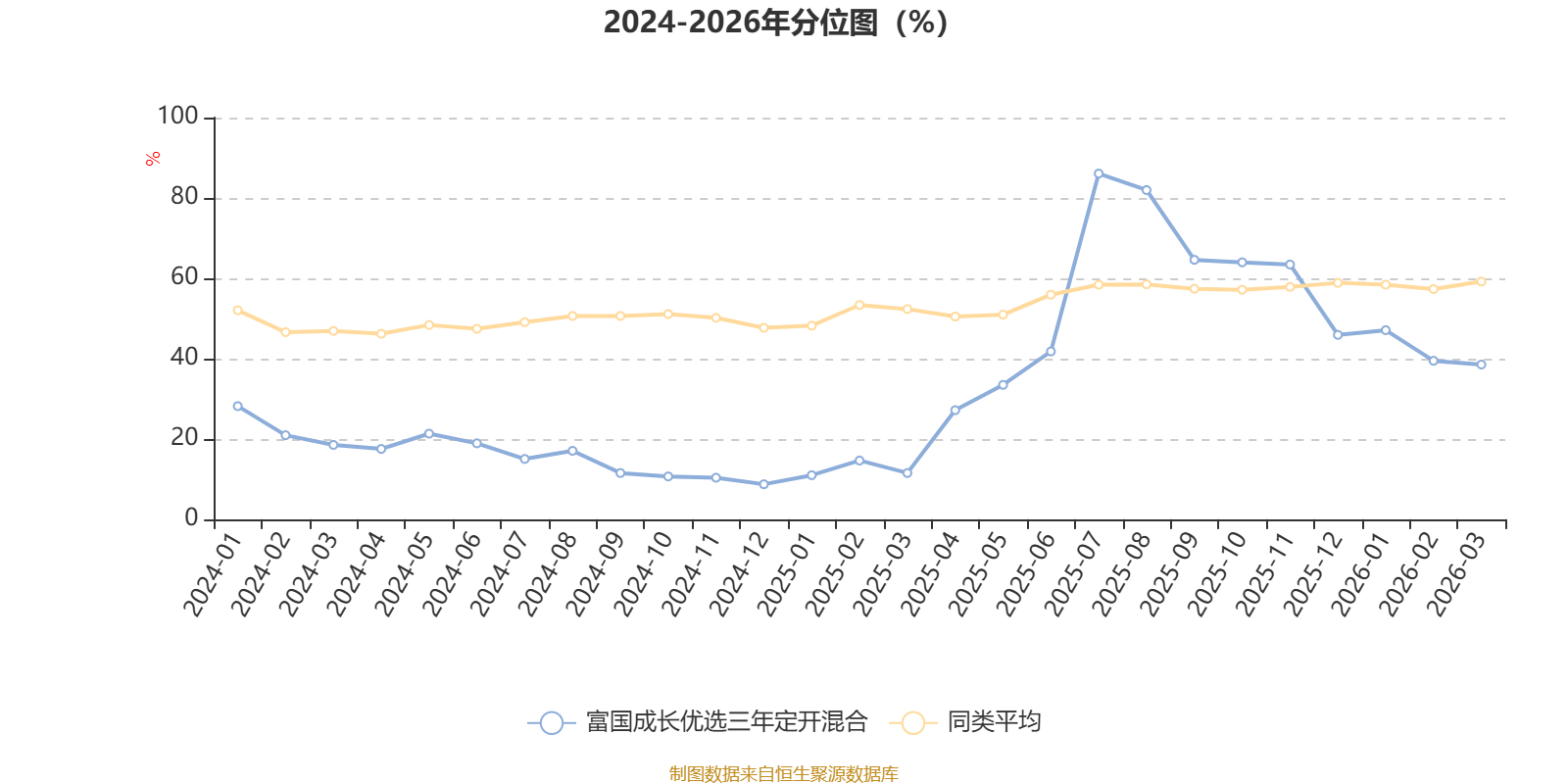 通过所选区间该基金净值增长率分位图,可以观察该基金与同类基金业绩比较情况。图为坐标原点到区间内某时点的净值增长率在同类基金中的分位数。