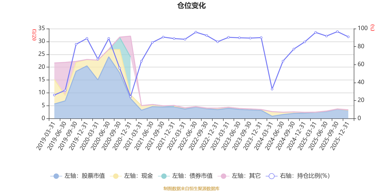 据定期报告数据统计,近三年平均股票仓位为82.84%,同类平均为72.57%。2025年三季度末基金达到96.7%的最高仓位,2020年末最低,为24.3%。