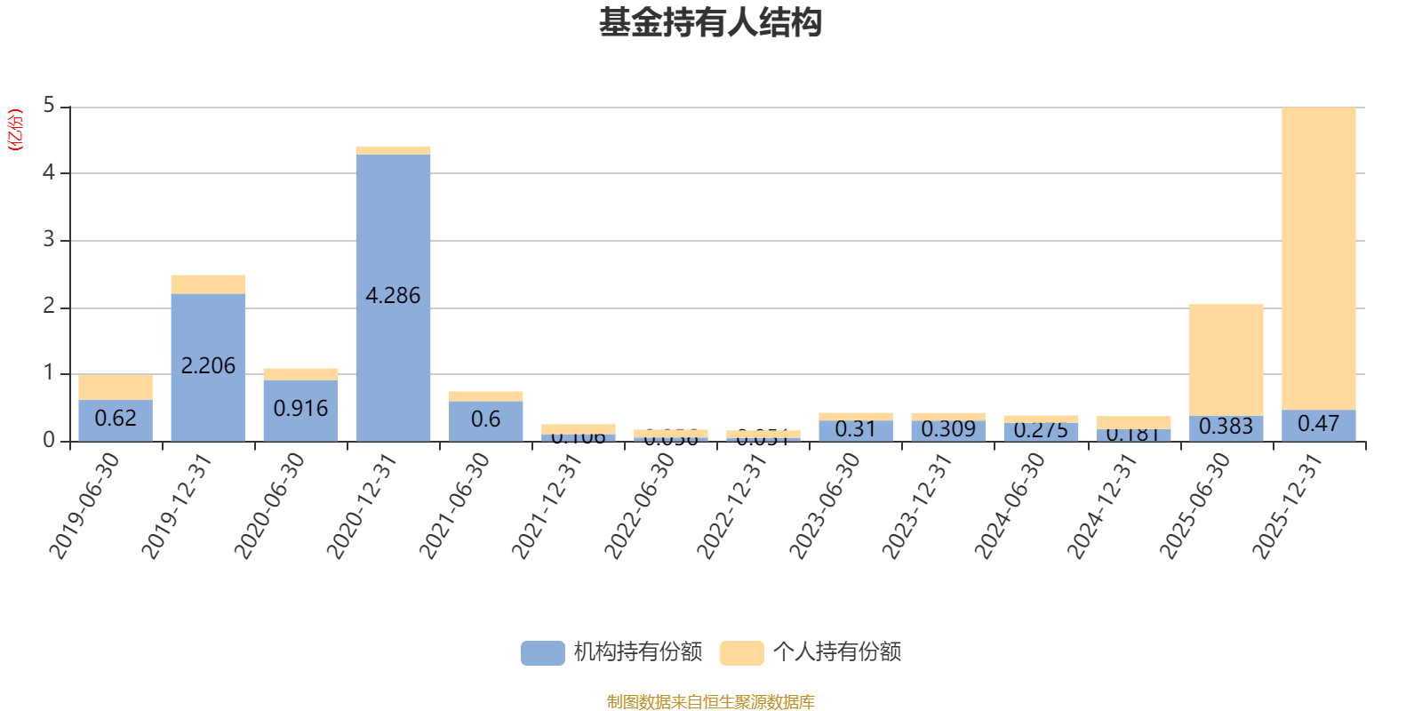 截至2025年12月31日,基金持有人共计2.53万户,合计持有4.99亿份。其中管理人员工持有311.65万份,占比0.62%,机构持有份额占比9.41%,个人投资者占比90.59%。