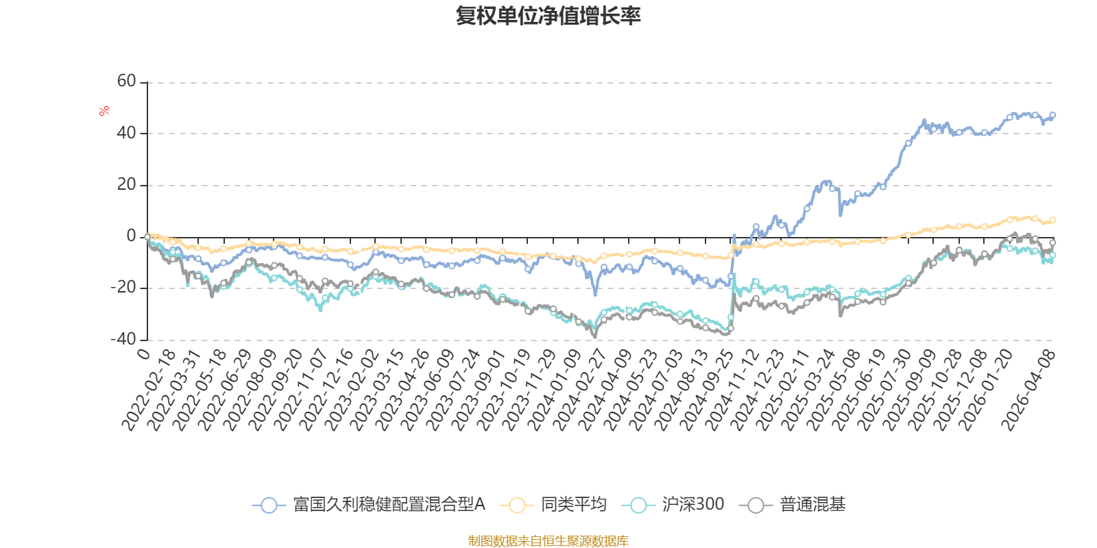 截至4月8日,富国久利稳健配置混合型A近三个月复权单位净值增长率为2.35%,位于同类可比基金66/629;近半年复权单位净值增长率为1.99%,位于同类可比基金234/629;近一年复权单位净值增长率为35.31%,位于同类可比基金9/629;近三年复权单位净值增长率为60.15%,位于同类可比基金1/581。