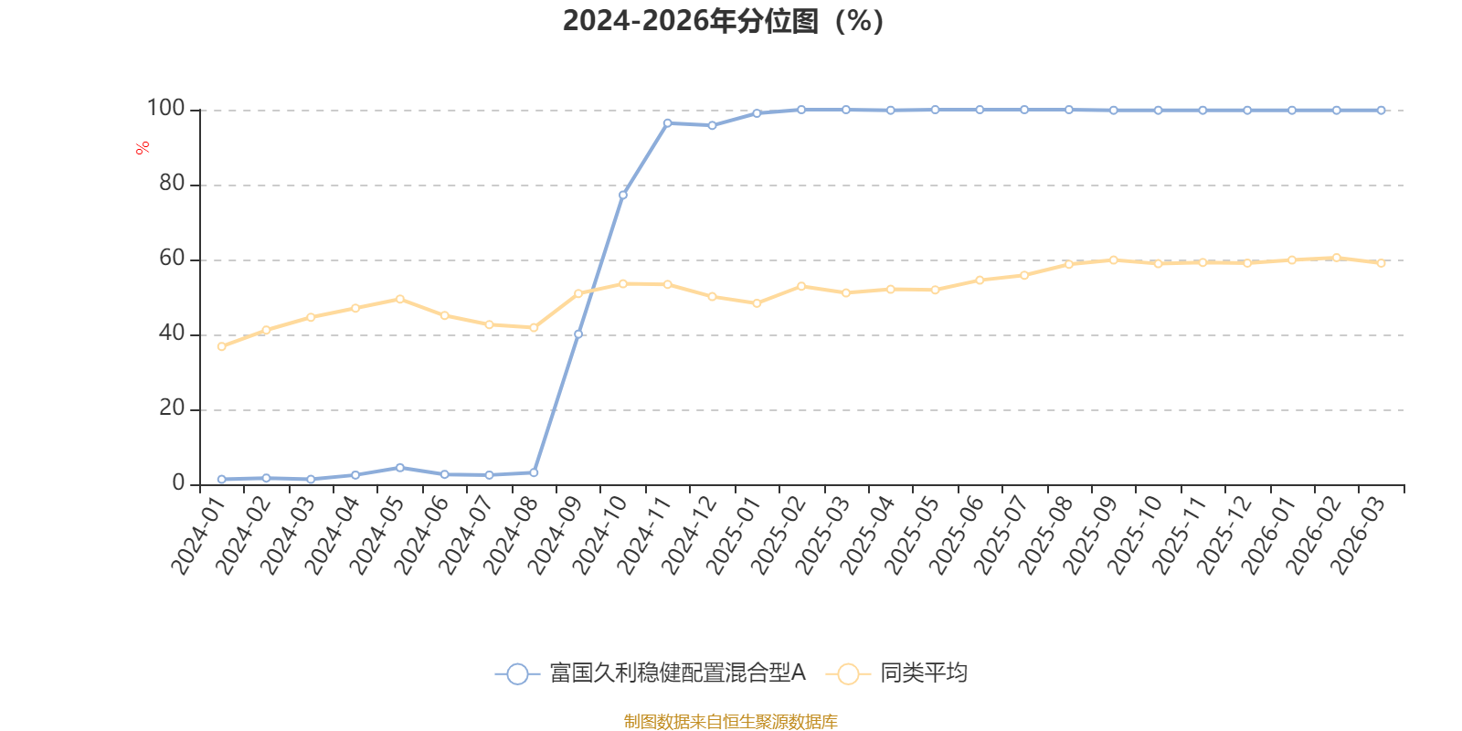 通过所选区间该基金净值增长率分位图,可以观察该基金与同类基金业绩比较情况。图为坐标原点到区间内某时点的净值增长率在同类基金中的分位数。