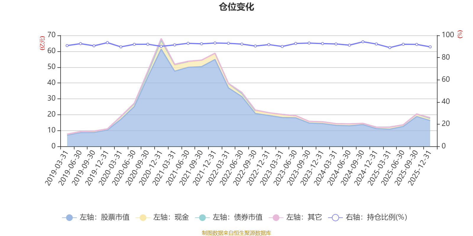 据定期报告数据统计,近三年平均股票仓位为91.77%,同类平均为86.12%。2024年三季度末基金达到94.27%的最高仓位,2025年一季度末最低,为89.02%。