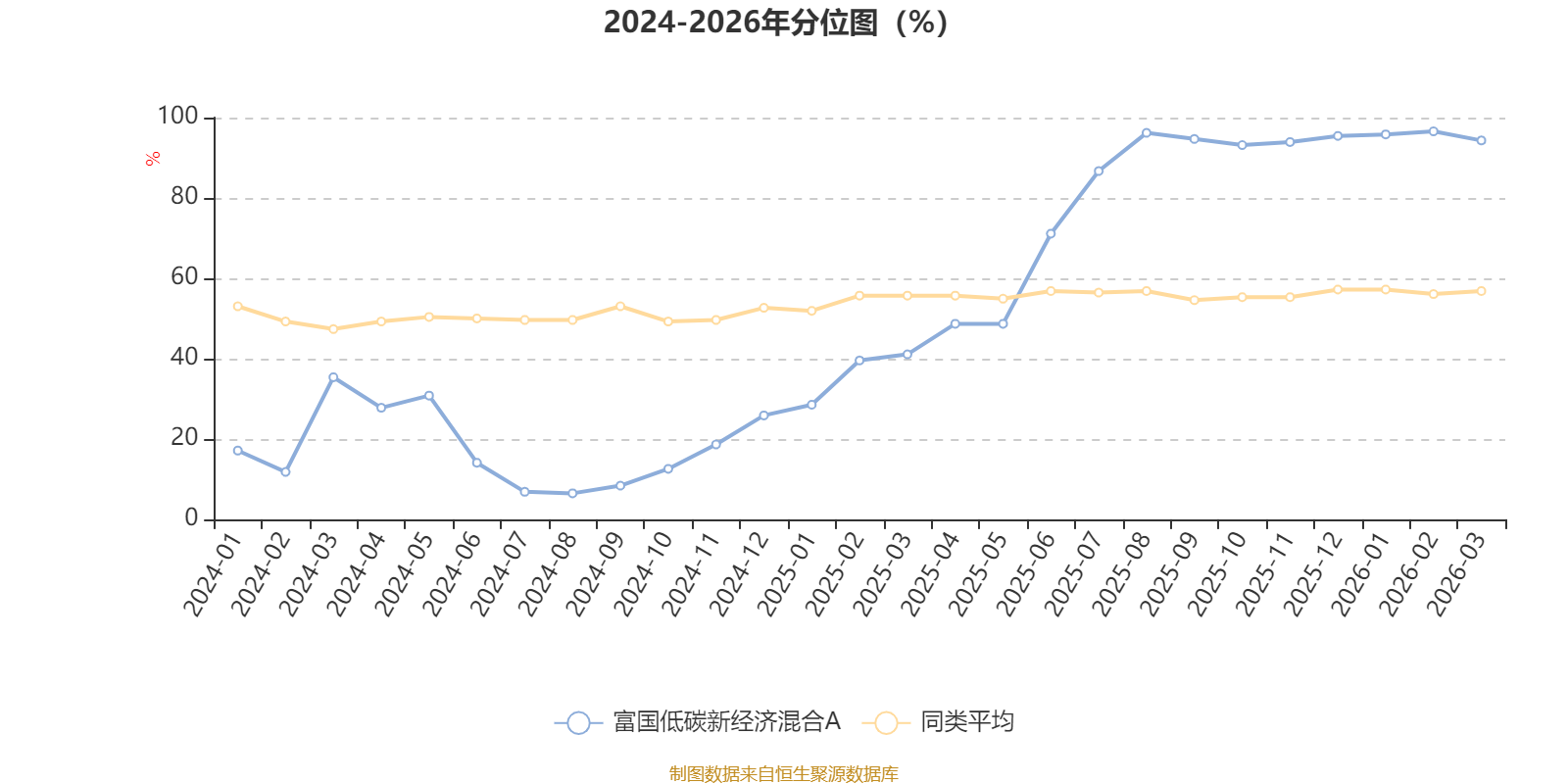 通过所选区间该基金净值增长率分位图,可以观察该基金与同类基金业绩比较情况。图为坐标原点到区间内某时点的净值增长率在同类基金中的分位数。