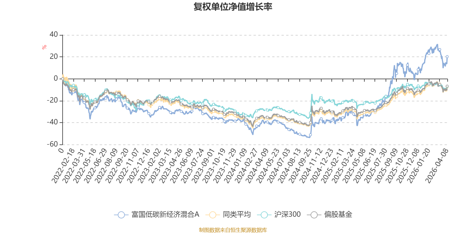 截至4月8日,富国低碳新经济混合A近三个月复权单位净值增长率为-1.27%,位于同类可比基金165/265;近半年复权单位净值增长率为7.01%,位于同类可比基金77/265;近一年复权单位净值增长率为110.74%,位于同类可比基金9/265;近三年复权单位净值增长率为67.27%,位于同类可比基金10/261。