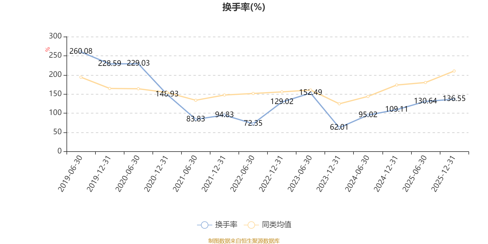 截至2025年12月31日,基金最近一年换手率约263.72%,持续5年低于同类均值。