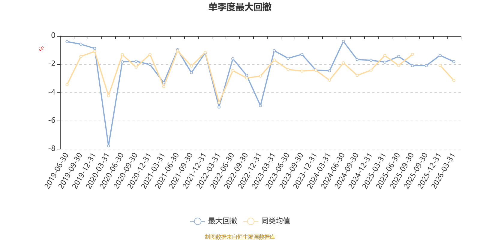 截至4月8日,基金近三年最大回撤为3.85%,同类可比基金排名109/534。单季度最大回撤出现在2020年一季度,为7.78%。
