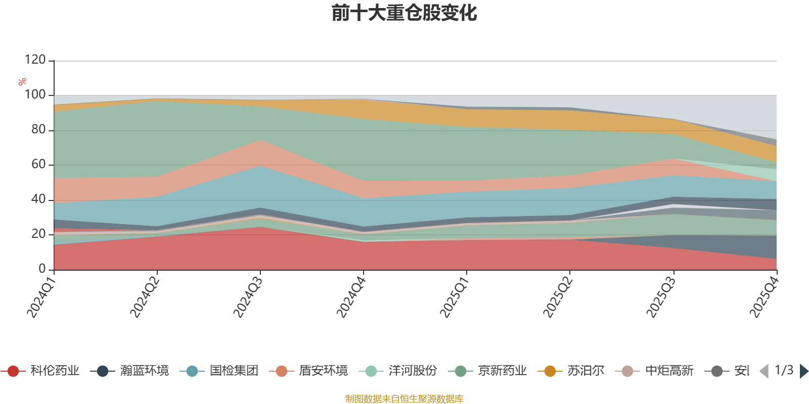 该基金持股集中度较高,且持股标的较为稳定,近2年前十大重仓股集中度长期超过60%。截至2025年末,基金十大重仓股分别是瀚蓝环境、川投能源、国投电力、京新药业、华能国际、柳药集团、科伦药业、分众传媒、长江电力、招商银行。