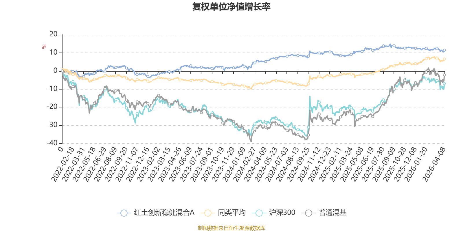 截至4月8日,红土创新稳健混合A近三个月复权单位净值增长率为-0.80%,位于同类可比基金534/629;近半年复权单位净值增长率为-0.98%,位于同类可比基金552/629;近一年复权单位净值增长率为1.31%,位于同类可比基金609/629;近三年复权单位净值增长率为11.23%,位于同类可比基金279/581。