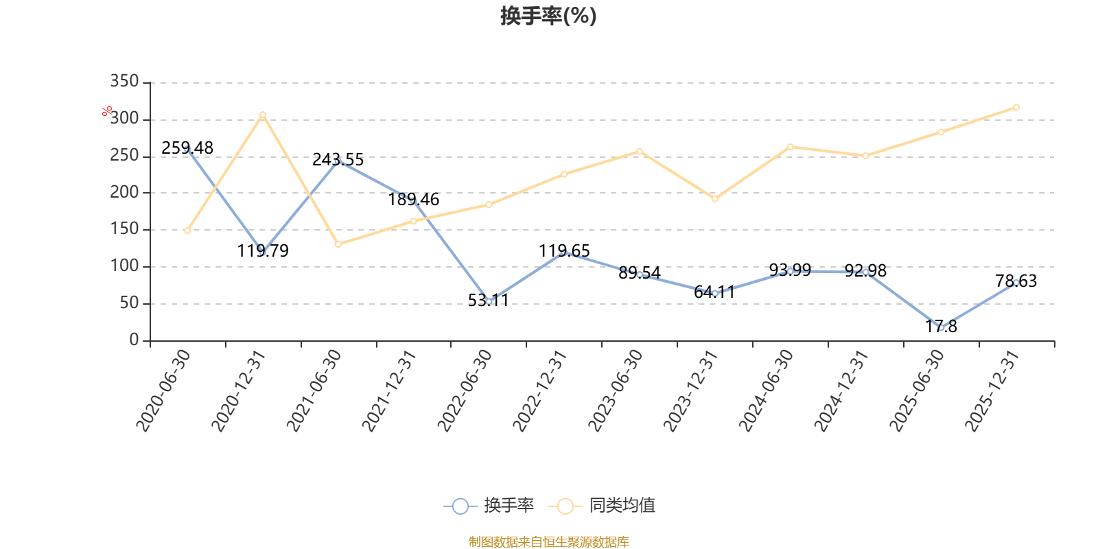 截至2025年12月31日,基金最近一年换手率约96.22%,持续4年低于同类均值。