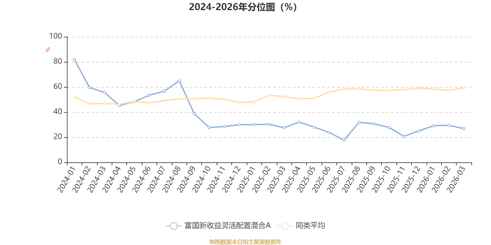 通过所选区间该基金净值增长率分位图,可以观察该基金与同类基金业绩比较情况。图为坐标原点到区间内某时点的净值增长率在同类基金中的分位数。