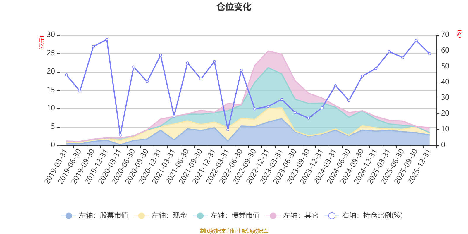据定期报告数据统计,近三年平均股票仓位为40.83%,同类平均为72.57%。2019年末基金达到67.23%的最高仓位,2020年一季度末最低,为6.48%。