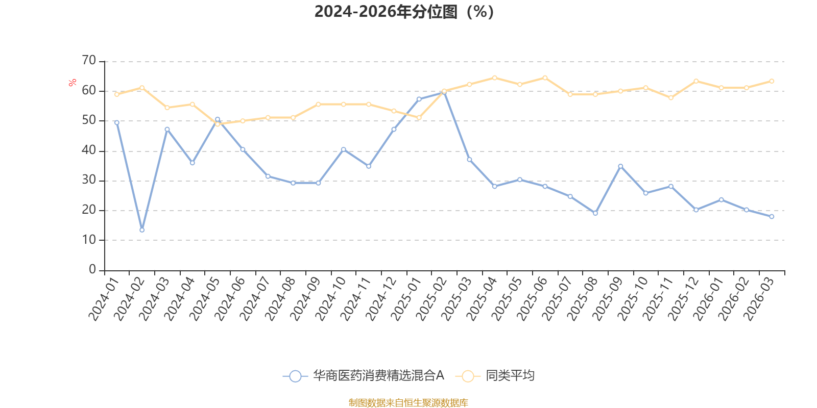 通过所选区间该基金净值增长率分位图,可以观察该基金与同类基金业绩比较情况。图为坐标原点到区间内某时点的净值增长率在同类基金中的分位数。
