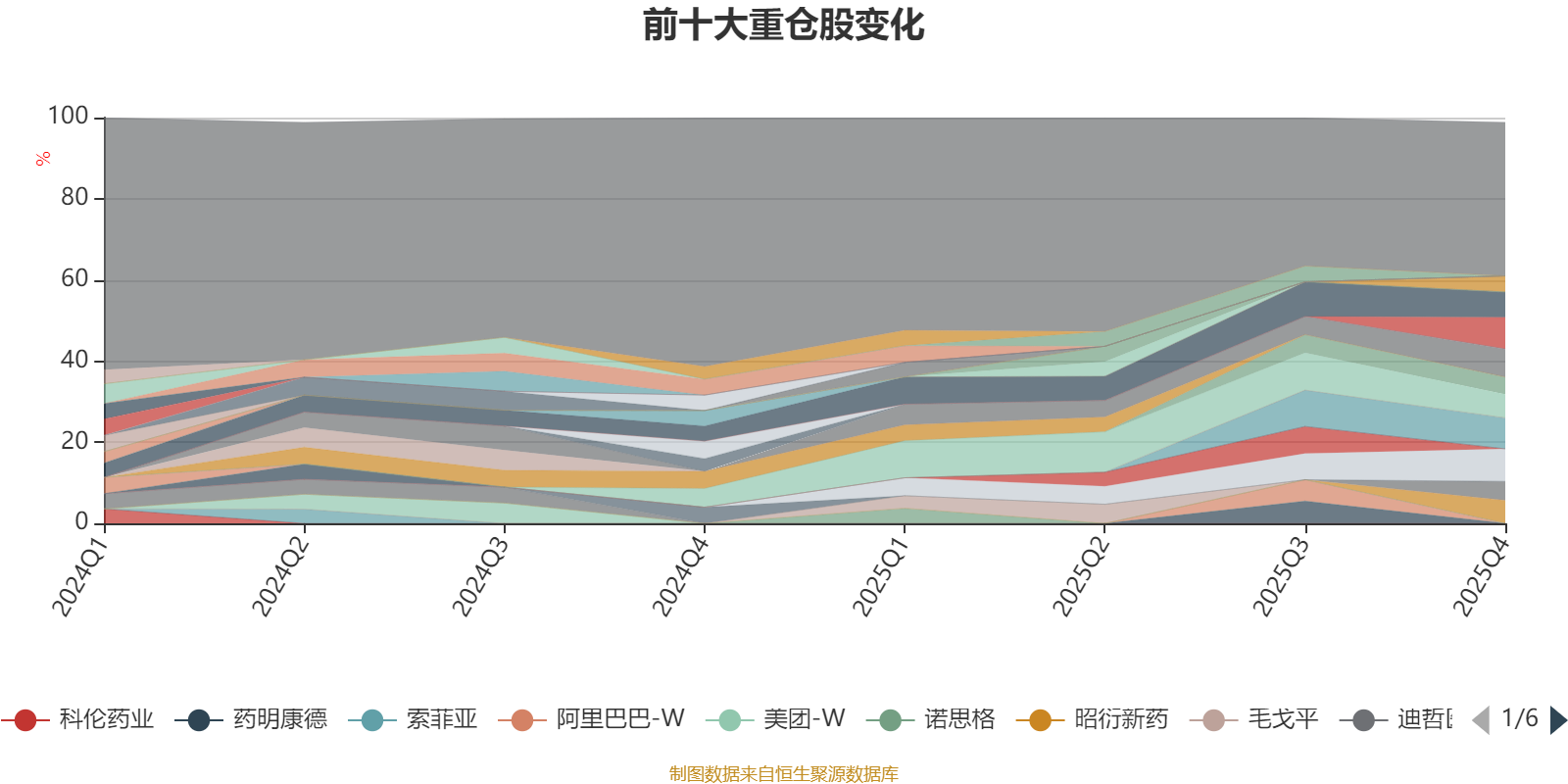 截至2025年末,基金十大重仓股分别是三生制药、映恩生物-B、药明合联、泰格医药、科伦博泰生物-B、信达生物、昭衍新药、迪哲医药、皓元医药、百奥赛图-B。