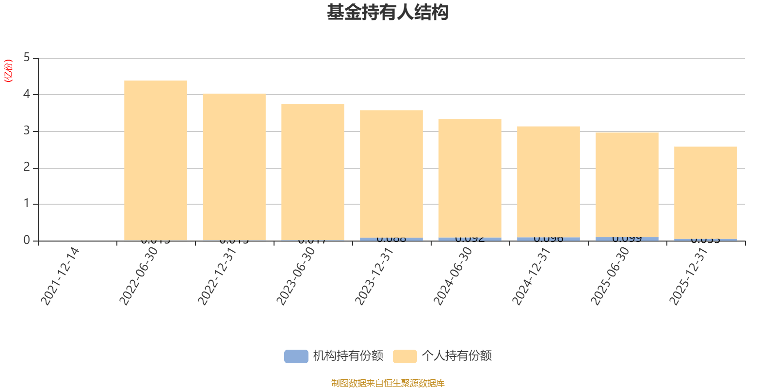 截至2025年12月31日,基金持有人共计4828户,合计持有2.58亿份。其中管理人员工持有28.32万份,占比0.11%,机构持有份额占比2.05%,个人投资者占比97.95%。