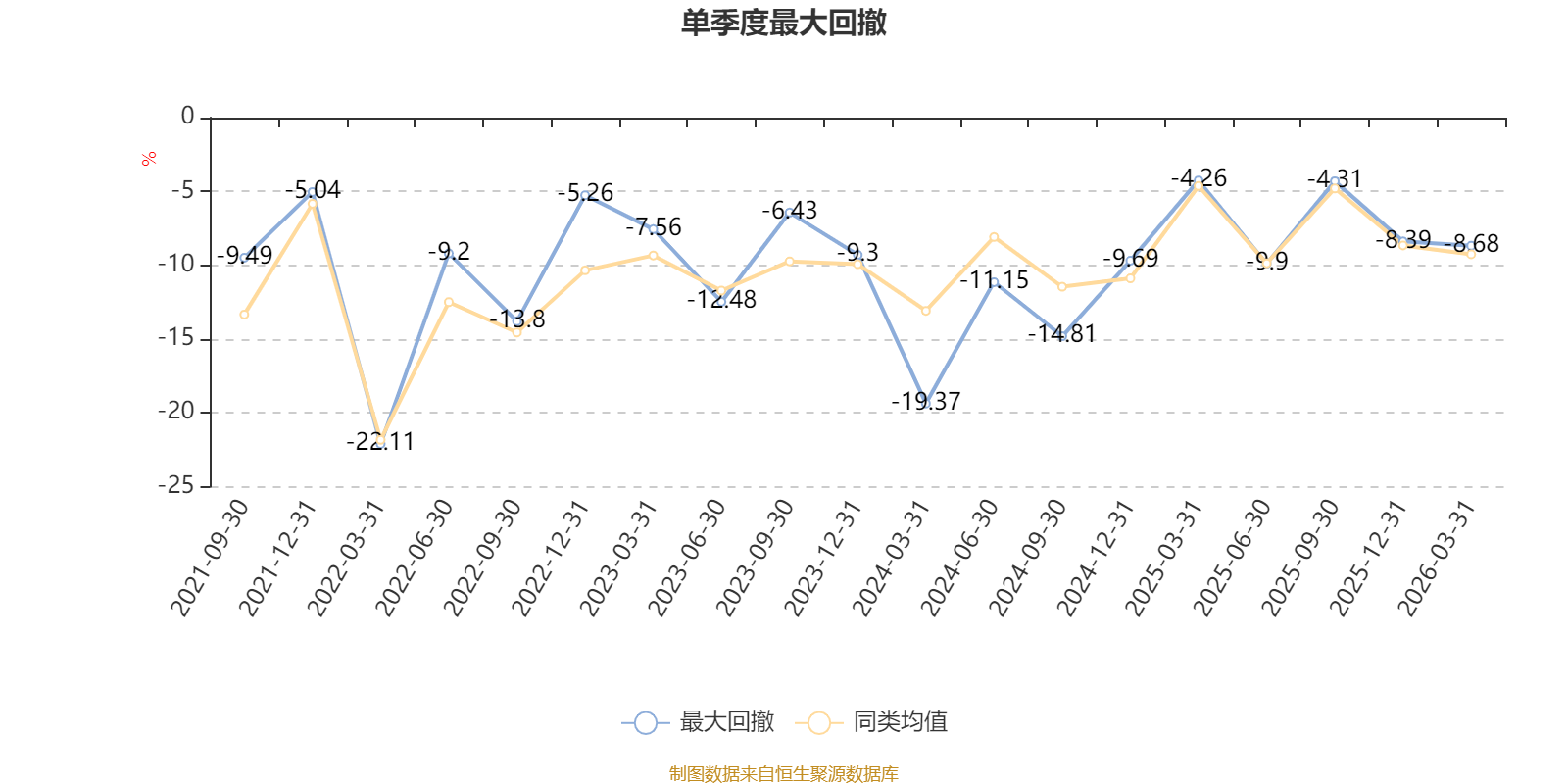 截至4月8日,基金近三年最大回撤为37.72%,同类可比基金排名15/20。单季度最大回撤出现在2022年一季度,为22.11%。