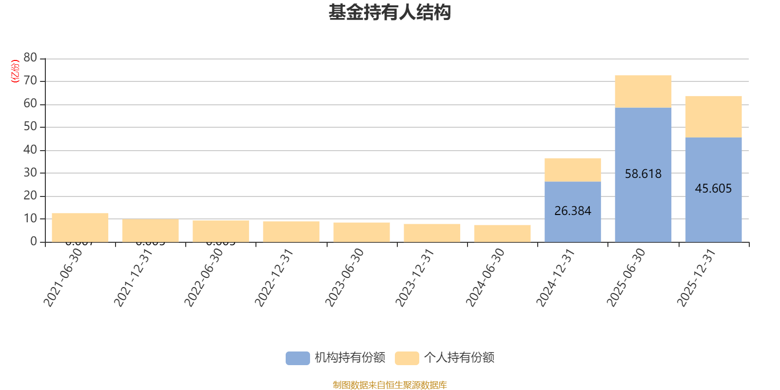 截至2025年12月31日,基金持有人共计14.52万户,合计持有63.6亿份。其中管理人员工持有6298.87万份,占比0.99%,机构持有份额占比71.70%,个人投资者占比28.30%。