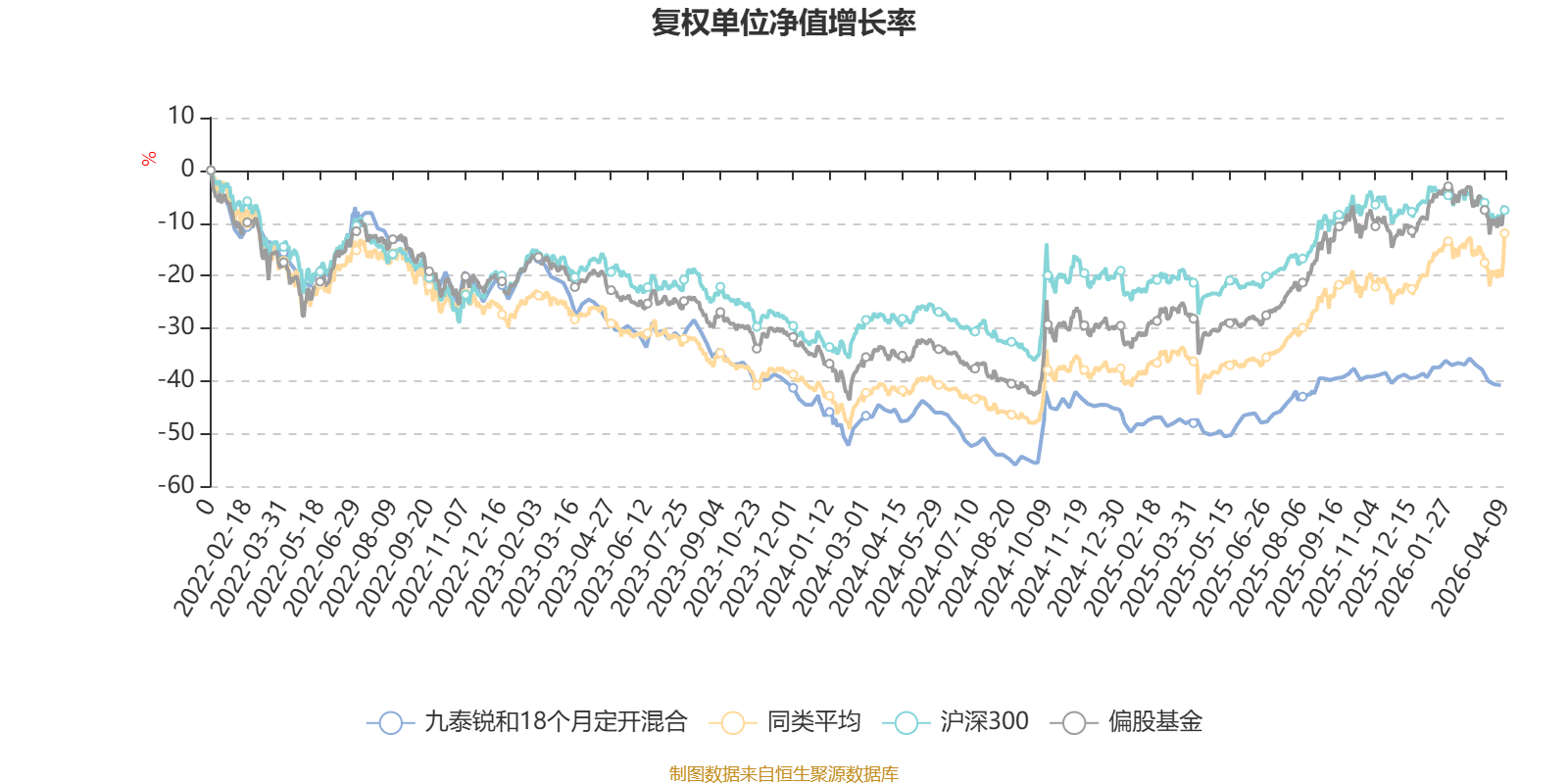 截至4月3日,九泰锐和18个月定开混合近三个月复权单位净值增长率为-2.42%,位于同类可比基金455/689;近半年复权单位净值增长率为-4.53%,位于同类可比基金526/689;近一年复权单位净值增长率为12.24%,位于同类可比基金613/685;近三年复权单位净值增长率为-21.57%,位于同类可比基金380/417。