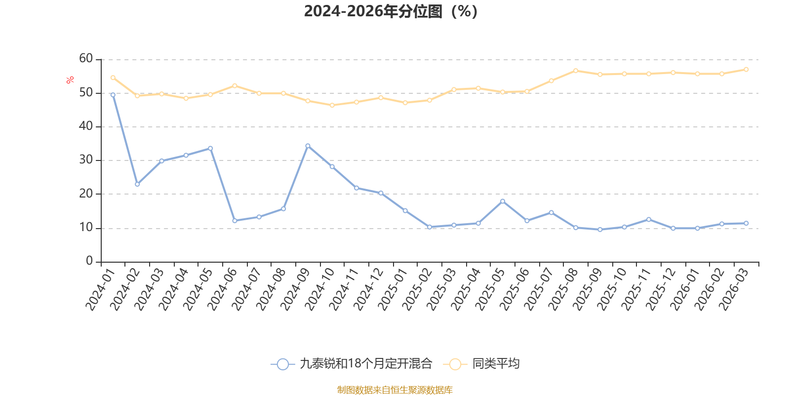 通过所选区间该基金净值增长率分位图,可以观察该基金与同类基金业绩比较情况。图为坐标原点到区间内某时点的净值增长率在同类基金中的分位数。