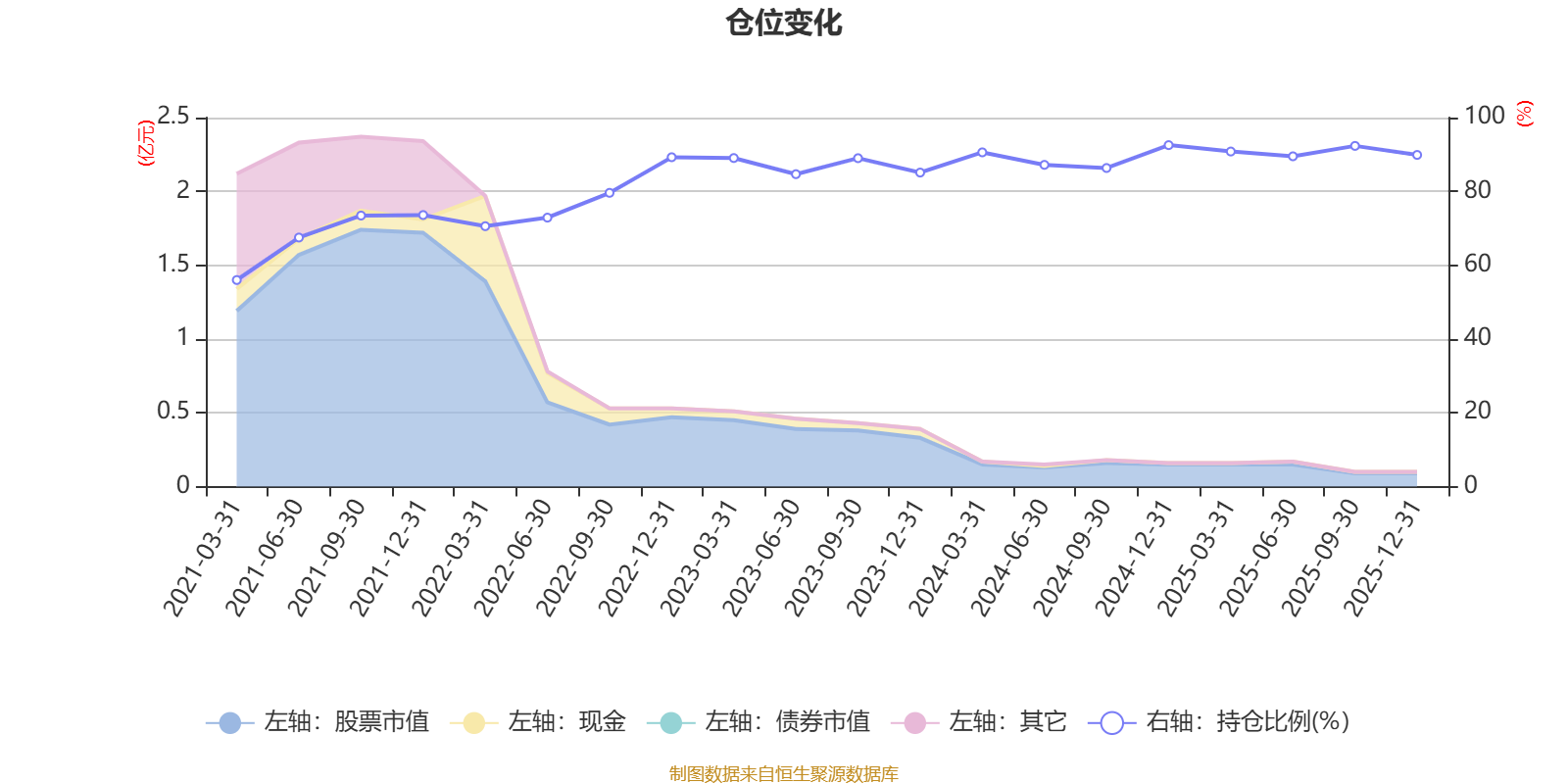 该基金持股集中度较高,近2年前十大重仓股集中度长期超过60%。截至2025年末,基金十大重仓股分别是博源化工、北方华创、龙佰集团、华能蒙电、海尔智家、中国移动、海螺水泥、药明康德、贵州茅台、盾安环境。