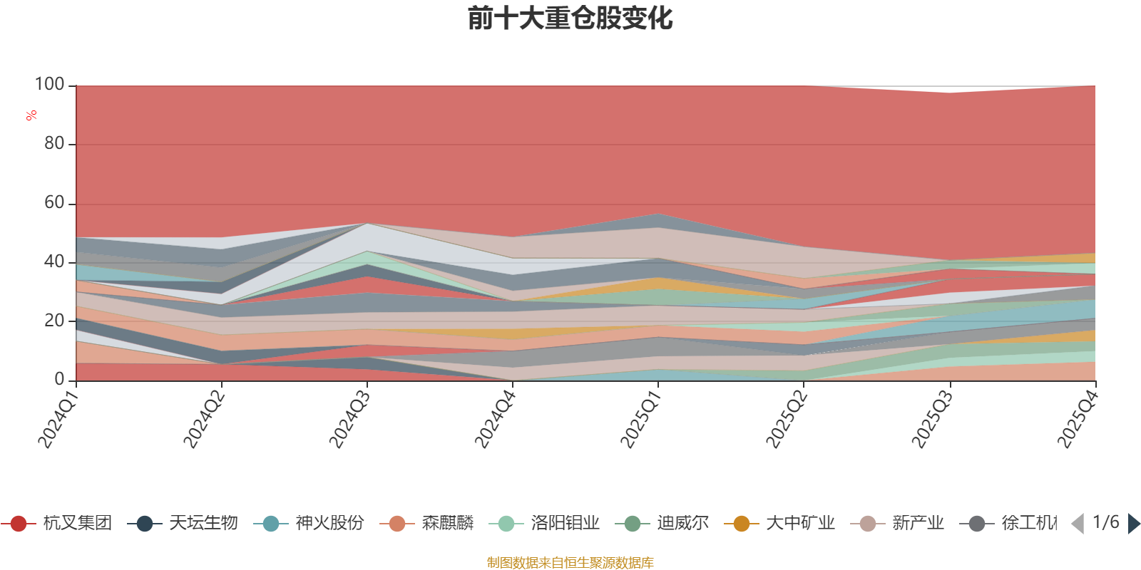 截至2025年末,基金十大重仓股分别是赛轮轮胎、森麒麟、中矿资源、徐工机械、铜陵有色、大中矿业、中际旭创、洛阳钼业、紫金黄金国际、迪威尔。