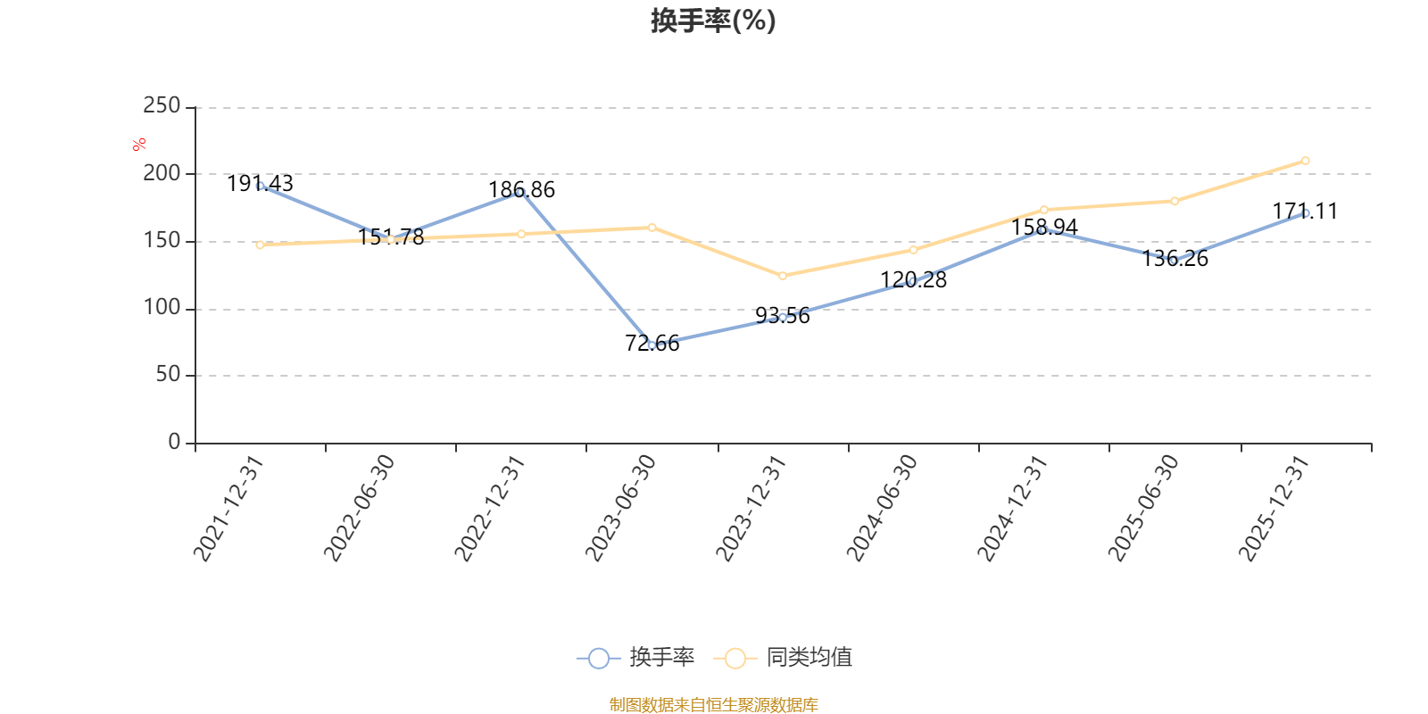 截至2025年12月31日,基金最近一年换手率约305.41%,持续3年低于同类均值。