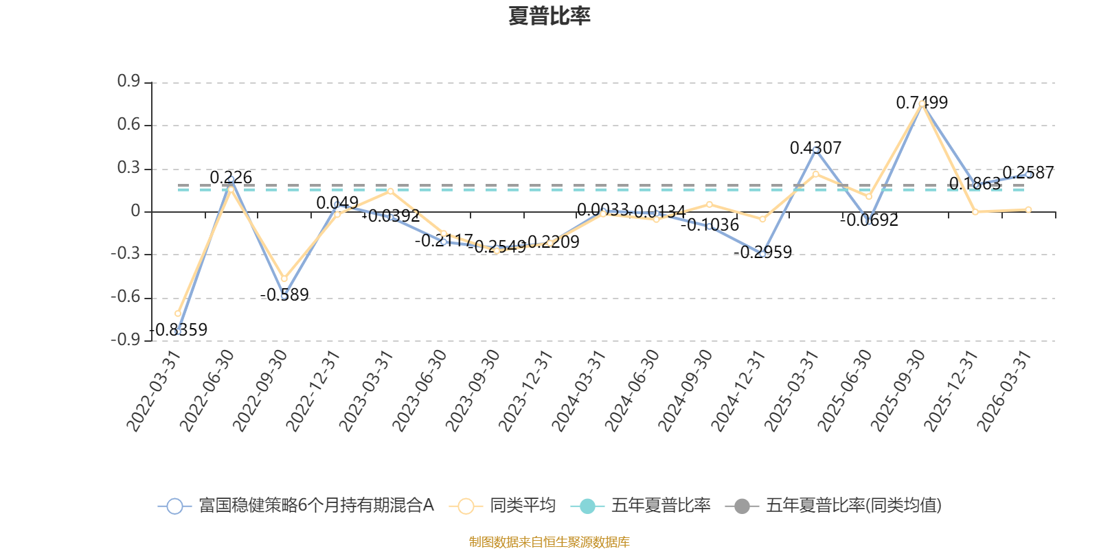截至3月31日,基金近三年夏普比率为0.5297,位于同类可比基金123/260。