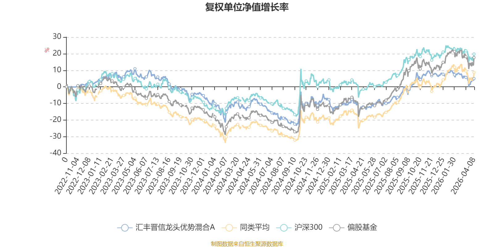 截至4月8日,汇丰晋信龙头优势混合A近三个月复权单位净值增长率为-2.37%,位于同类可比基金456/689;近半年复权单位净值增长率为-2.54%,位于同类可比基金503/689;近一年复权单位净值增长率为25.27%,位于同类可比基金489/685;近三年复权单位净值增长率为-4.51%,位于同类可比基金310/417。