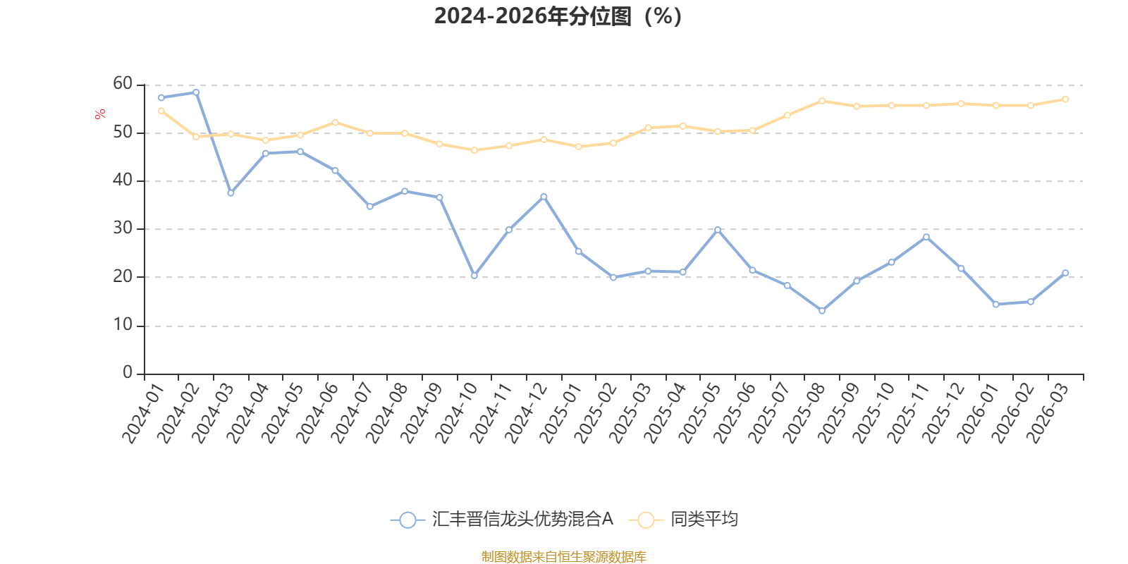 通过所选区间该基金净值增长率分位图,可以观察该基金与同类基金业绩比较情况。图为坐标原点到区间内某时点的净值增长率在同类基金中的分位数。