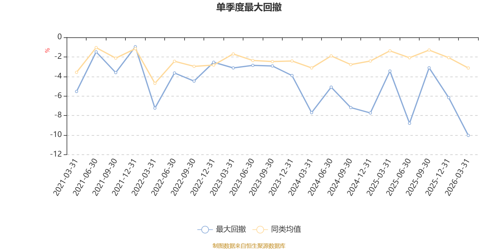 截至4月8日,基金近三年最大回撤为14.7%,同类可比基金排名492/534。单季度最大回撤出现在2026年一季度,为10.04%。