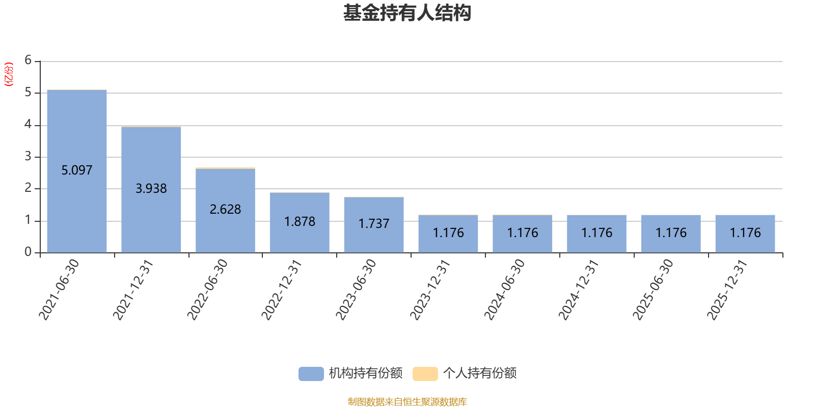 截至2025年12月31日,基金持有人共计101户,合计持有1.18亿份。其中管理人员工持有4785.73份,机构持有份额占比99.99%,个人投资者占比0.01%。
