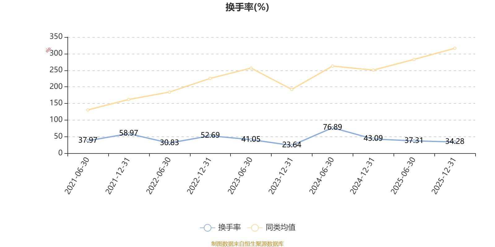 截至2025年12月31日,基金最近一年换手率约70.12%,持续低于同类均值。