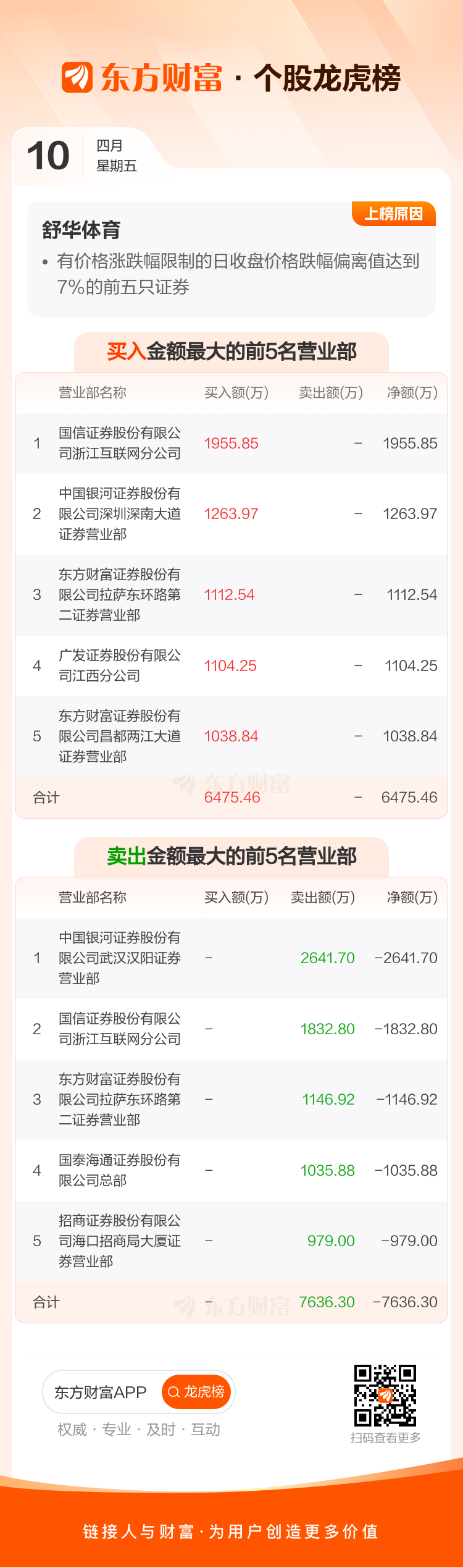 舒华体育(605299)龙虎榜数据(04-10)