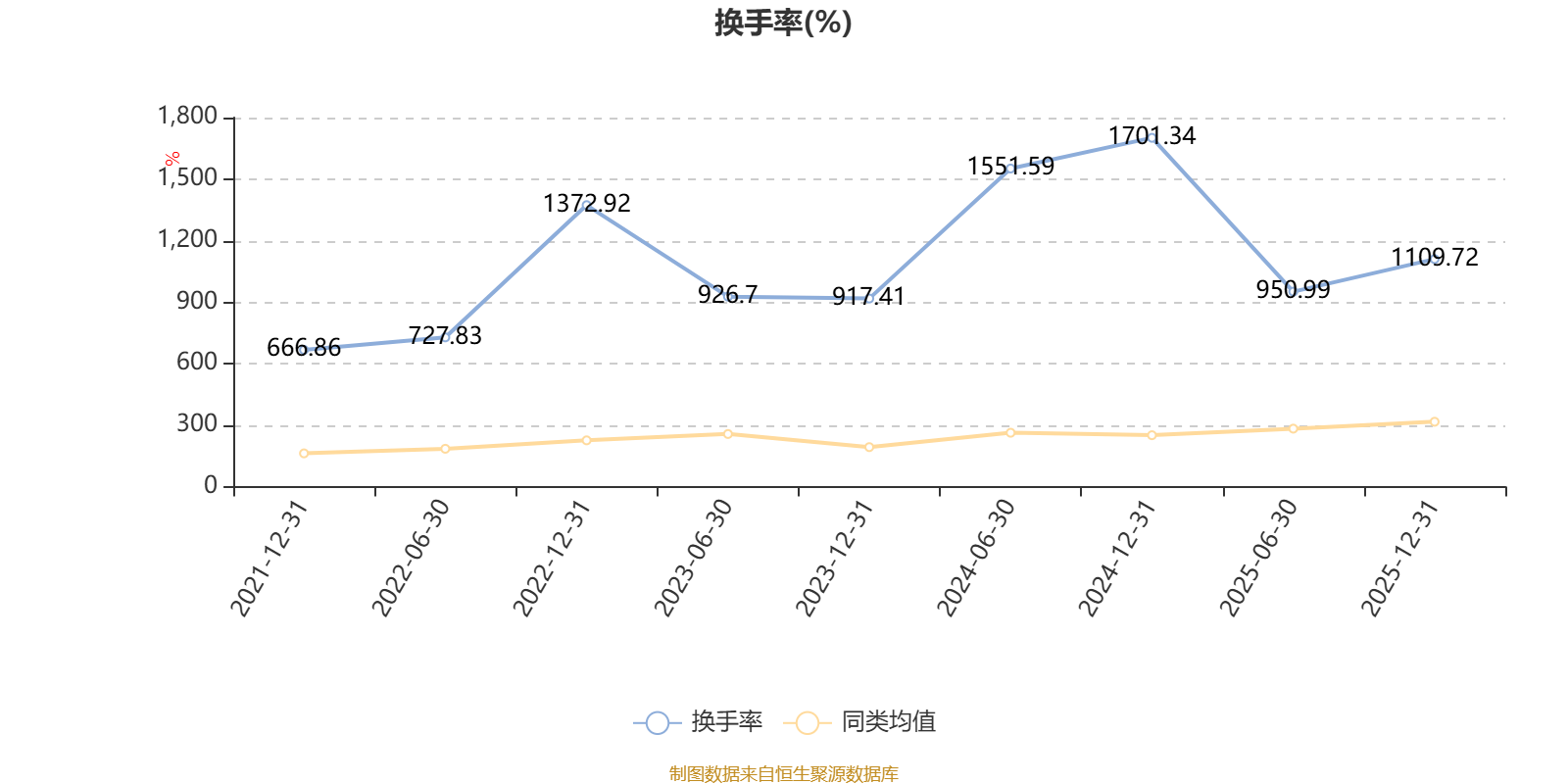 截至2025年12月31日,基金最近一年换手率约2245.99%,持续高于同类均值。