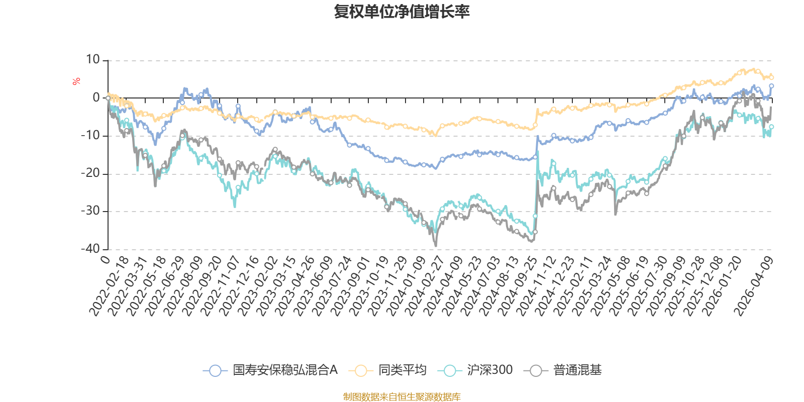 截至4月9日,国寿安保稳弘混合A近三个月复权单位净值增长率为2.05%,位于同类可比基金64/629;近半年复权单位净值增长率为0.66%,位于同类可比基金378/629;近一年复权单位净值增长率为12.58%,位于同类可比基金111/629;近三年复权单位净值增长率为6.36%,位于同类可比基金437/581。