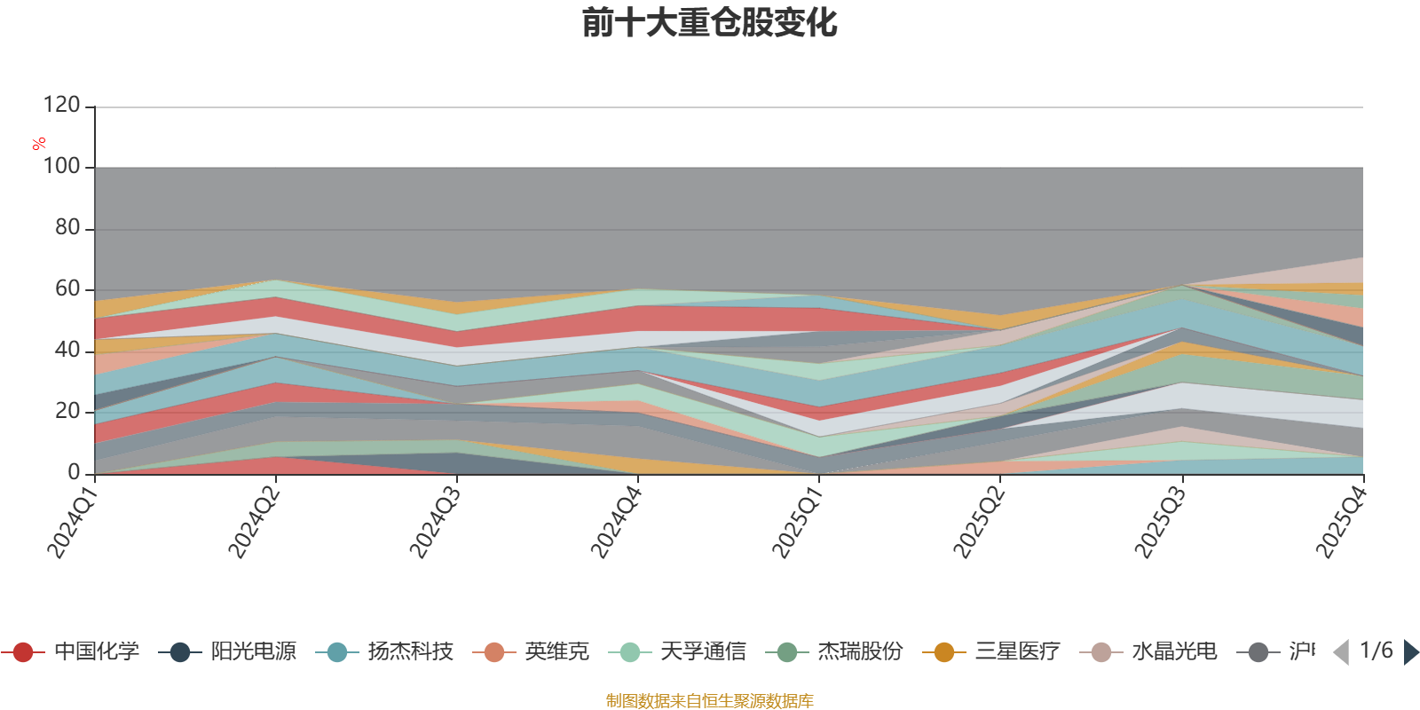 该基金持股集中度较高。截至2025年末,基金十大重仓股分别是新易盛、沪电股份、华友钴业、中芯国际、亿纬锂能、天华新能、生益科技、扬杰科技、潮宏基、华工科技。