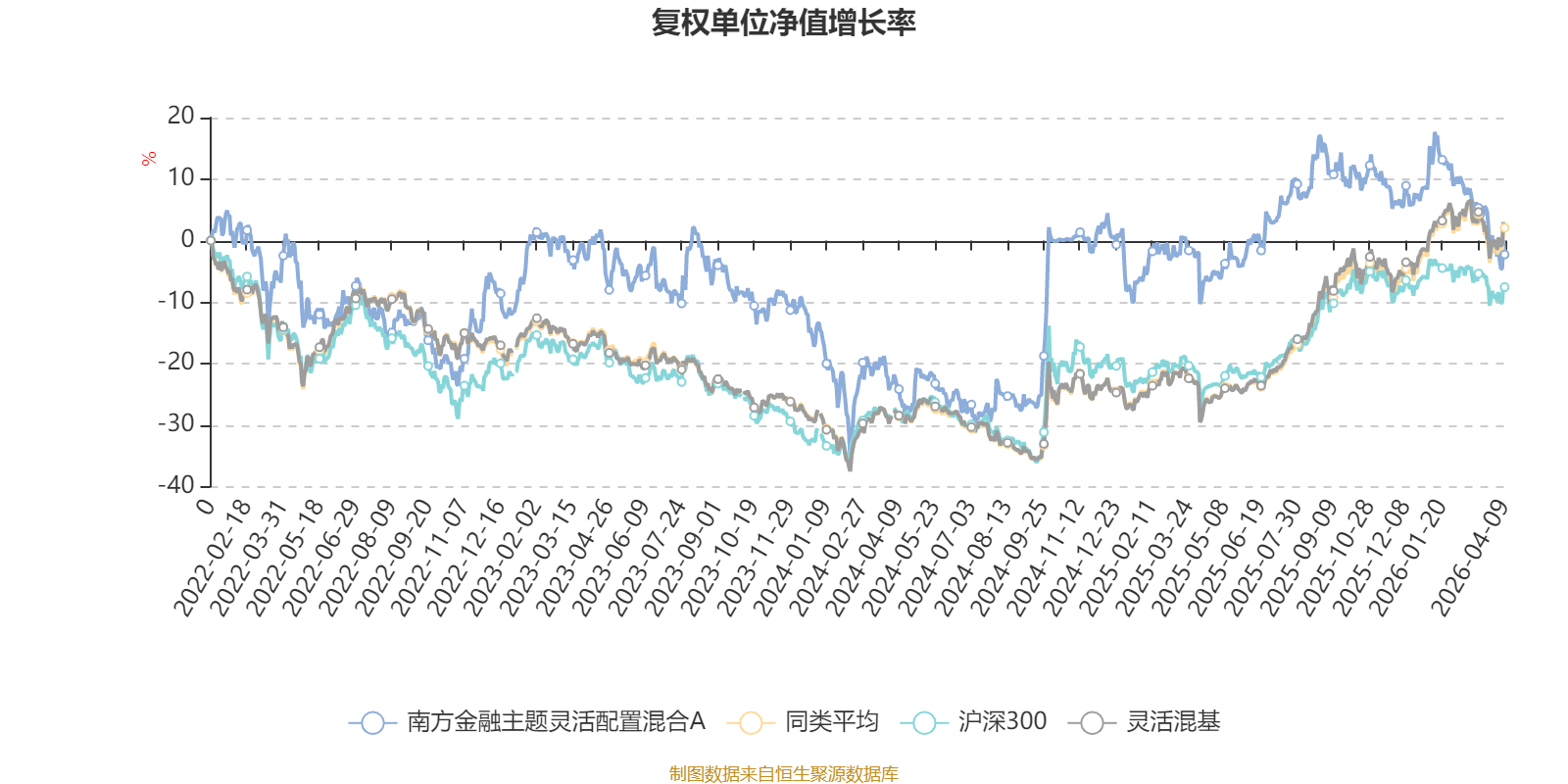 截至4月9日,南方金融主题灵活配置混合A近三个月复权单位净值增长率为-14.28%,位于同类可比基金1242/1287;近半年复权单位净值增长率为-12.92%,位于同类可比基金1216/1286;近一年复权单位净值增长率为6.31%,位于同类可比基金1122/1286;近三年复权单位净值增长率为-2.88%,位于同类可比基金1009/1286。