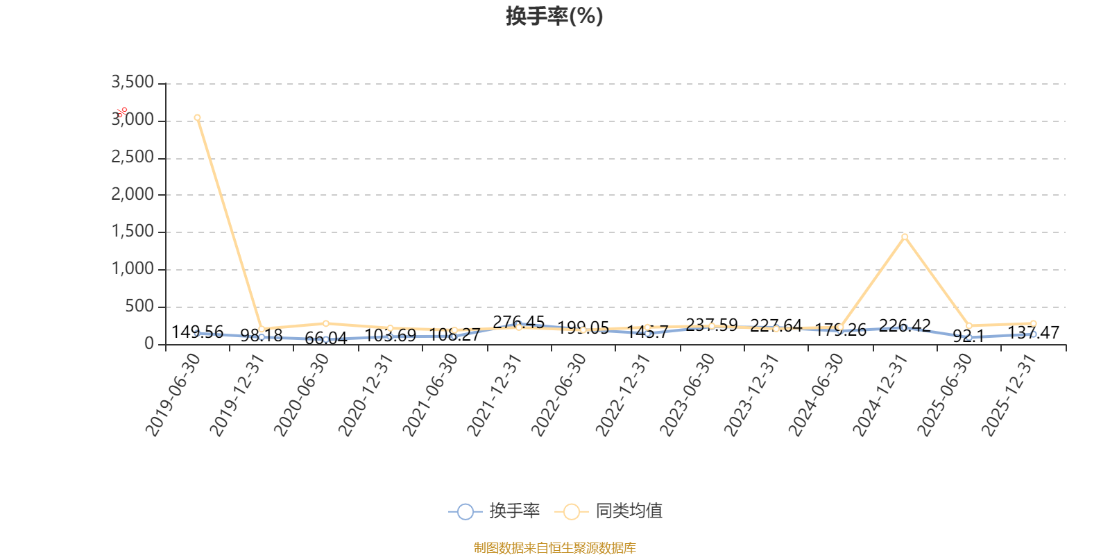 截至2025年12月31日,基金最近一年换手率约213.87%,持续2年低于同类均值。